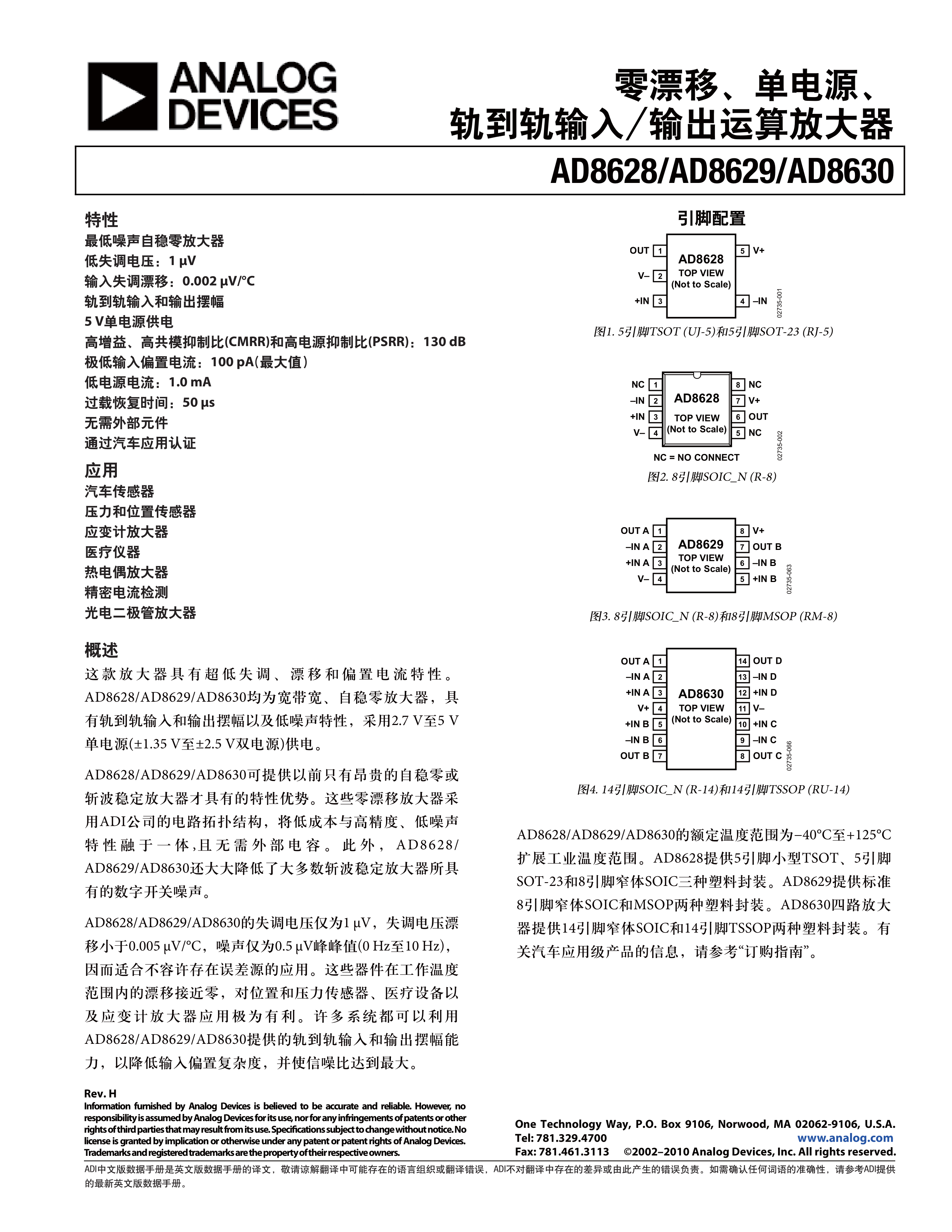 AD8630ARUZ数据手册TSSOP-14封装ADI(亚德诺)-LINEARPDF规格书,中英文下