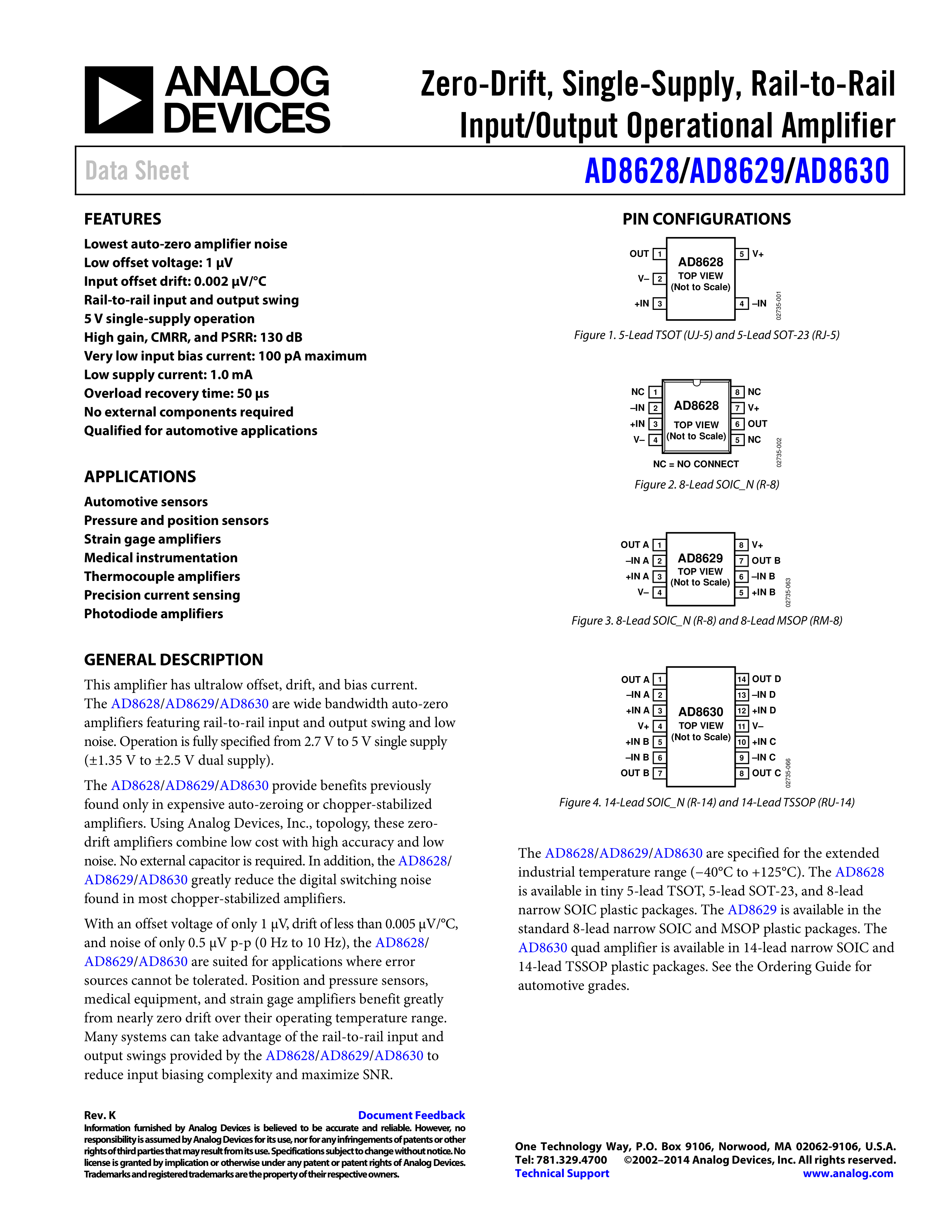 AD8630WARZ-R7数据手册SOIC-14封装ADI(亚德诺)-LINEARPDF规格书,中英