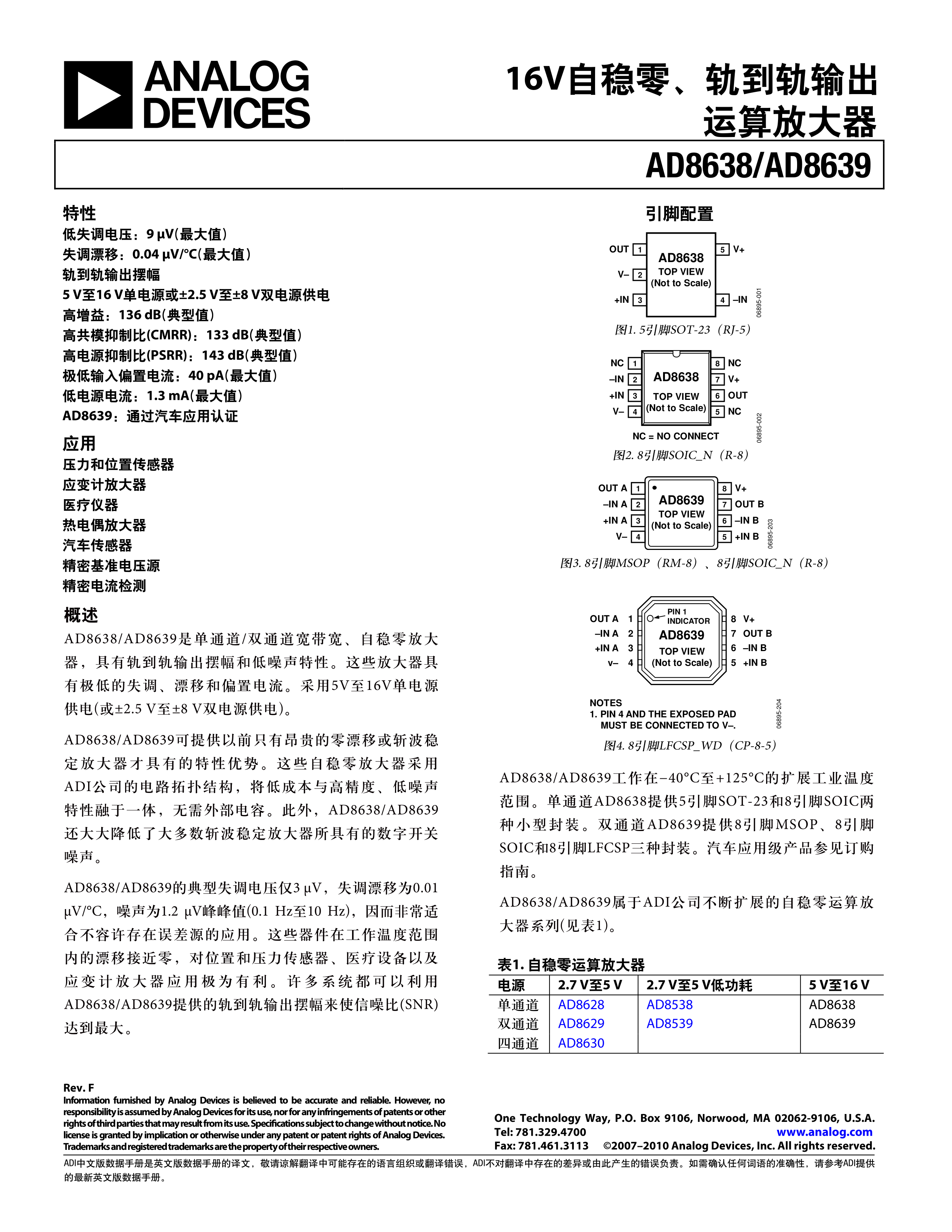 AD8639ARMZ-R7数据手册MSOP-8封装ADI(亚德诺)-LINEARPDF规格书,中英文