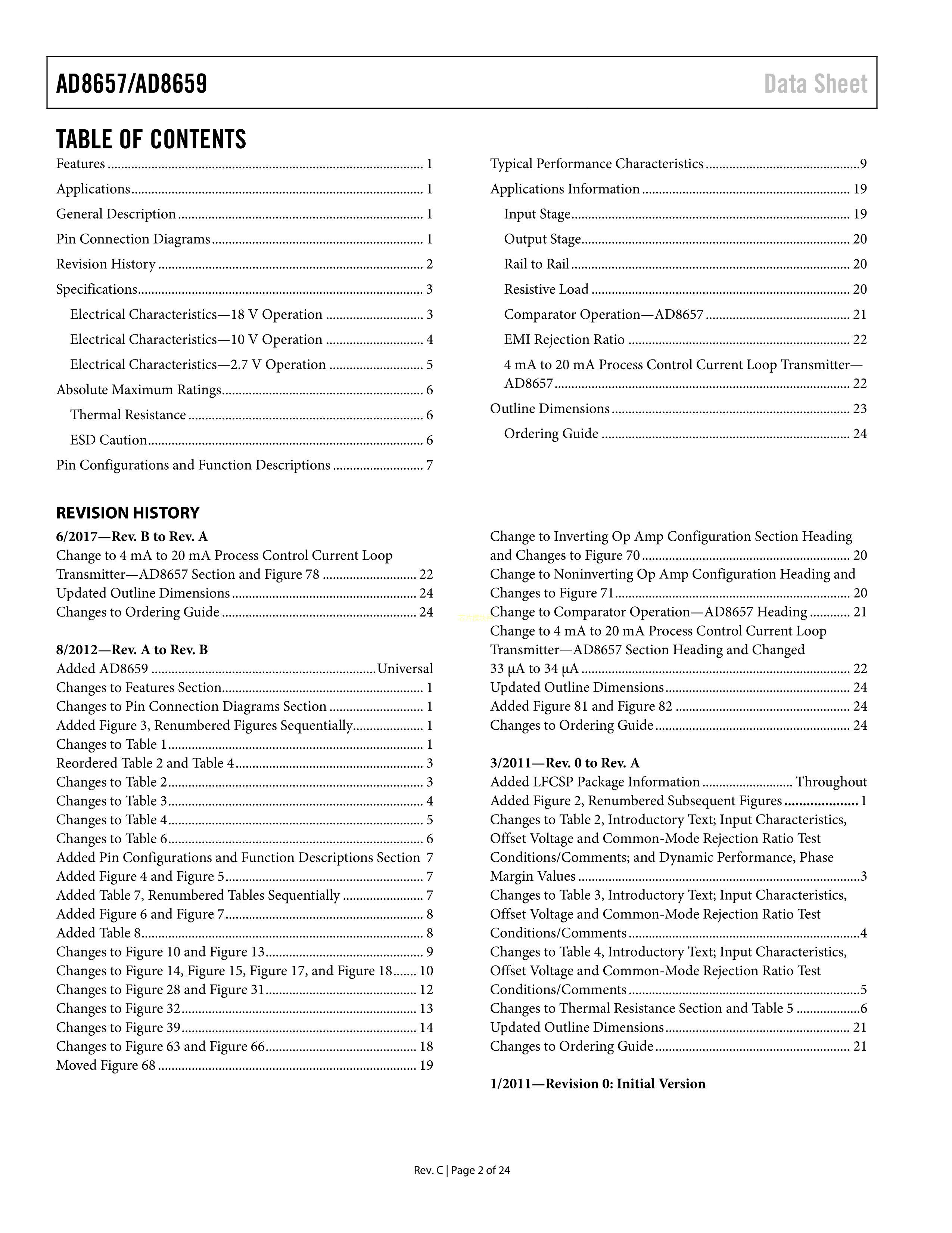 AD8657ARMZ-R7数据手册MSOP-8封装ADI(亚德诺)-LINEARPDF规格书,中英文