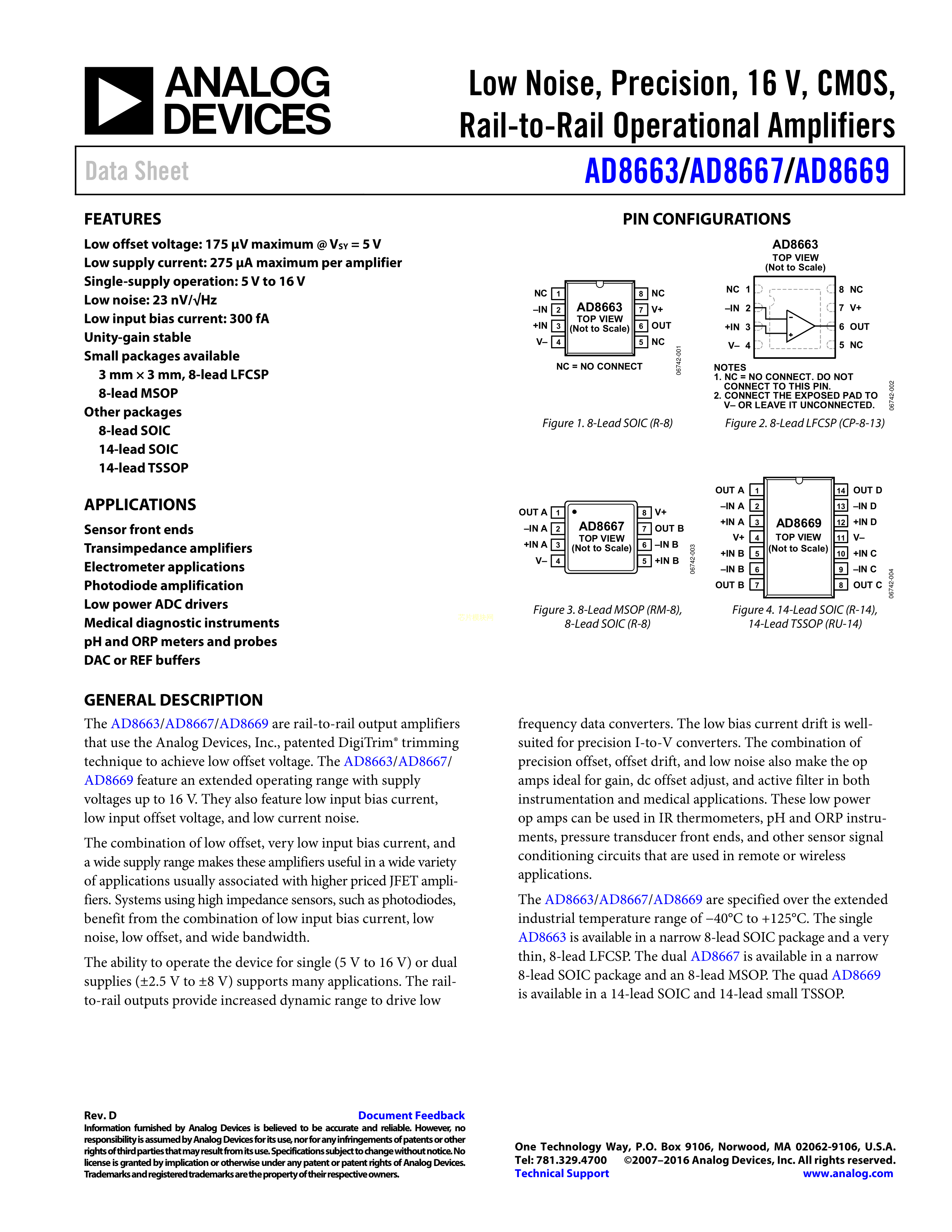 AD8667ARZ-REEL数据手册SOIC-8封装ADI(亚德诺)-LINEARPDF规格书,中英文下载