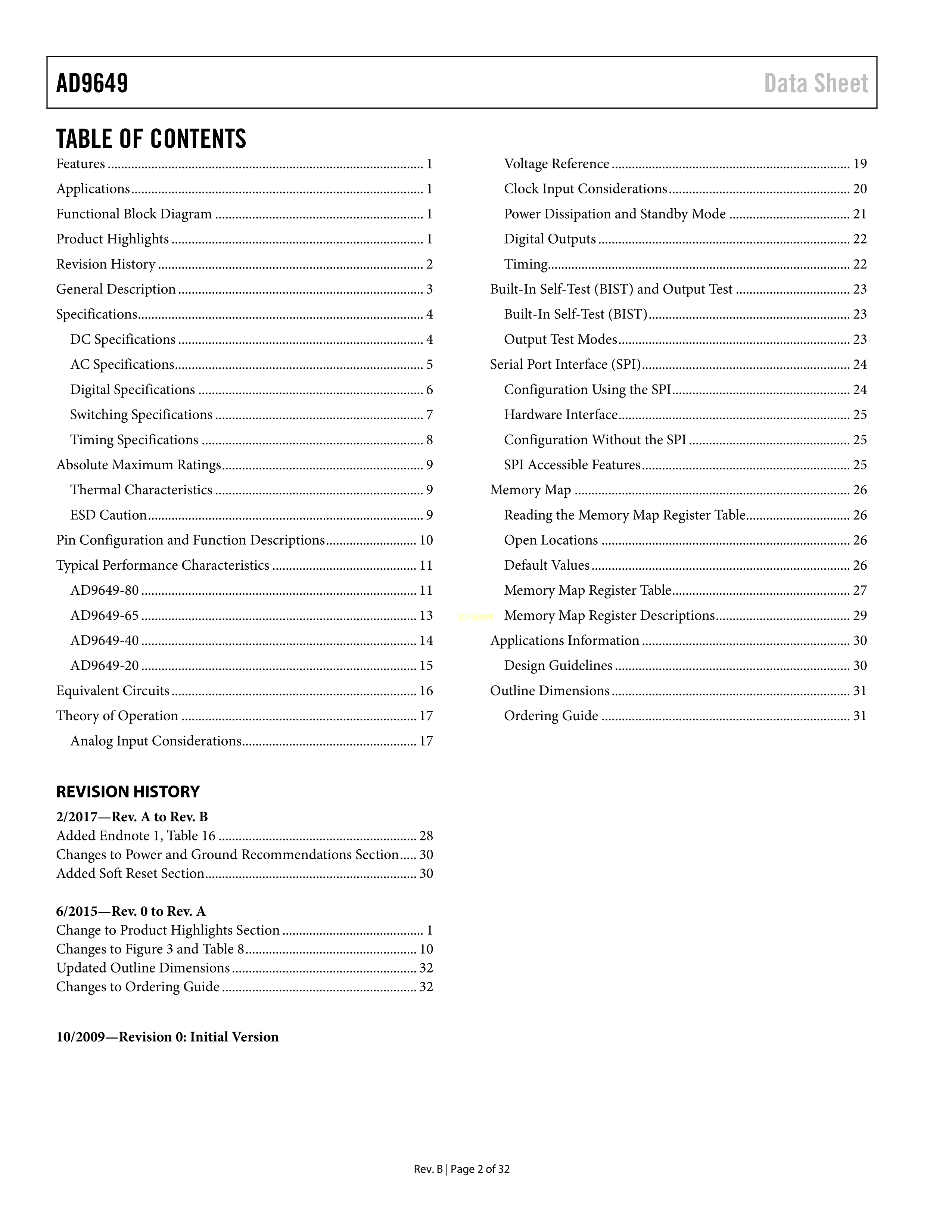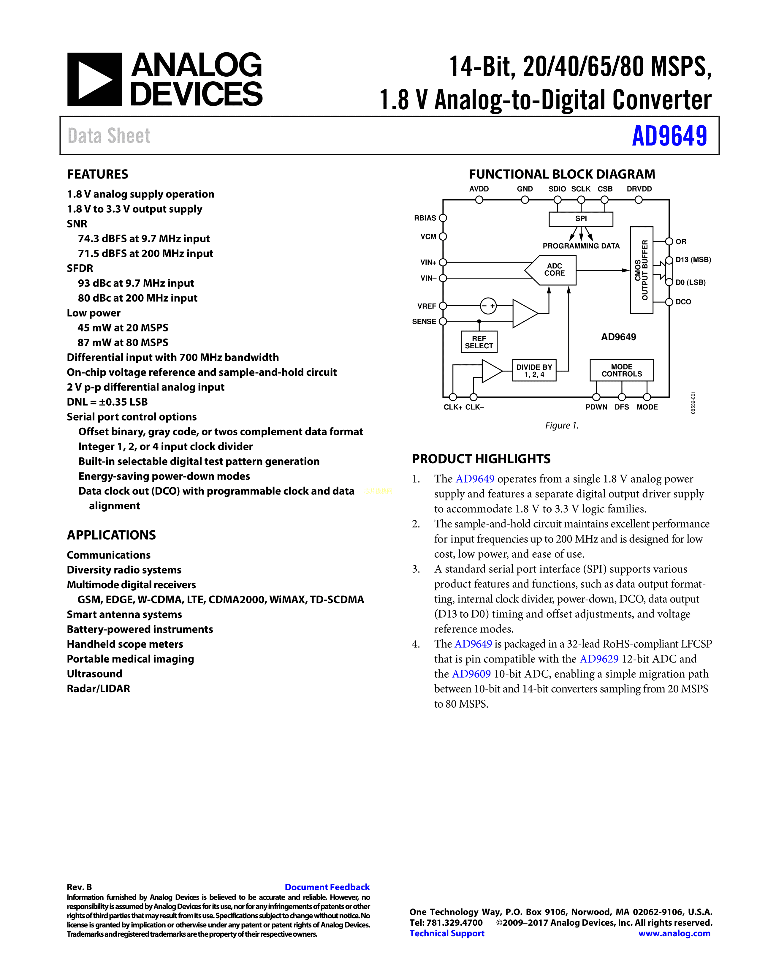 AD9649BCPZRL7-65数据手册LFCSP-32封装ADI(亚德诺)-LINEARPDF规格