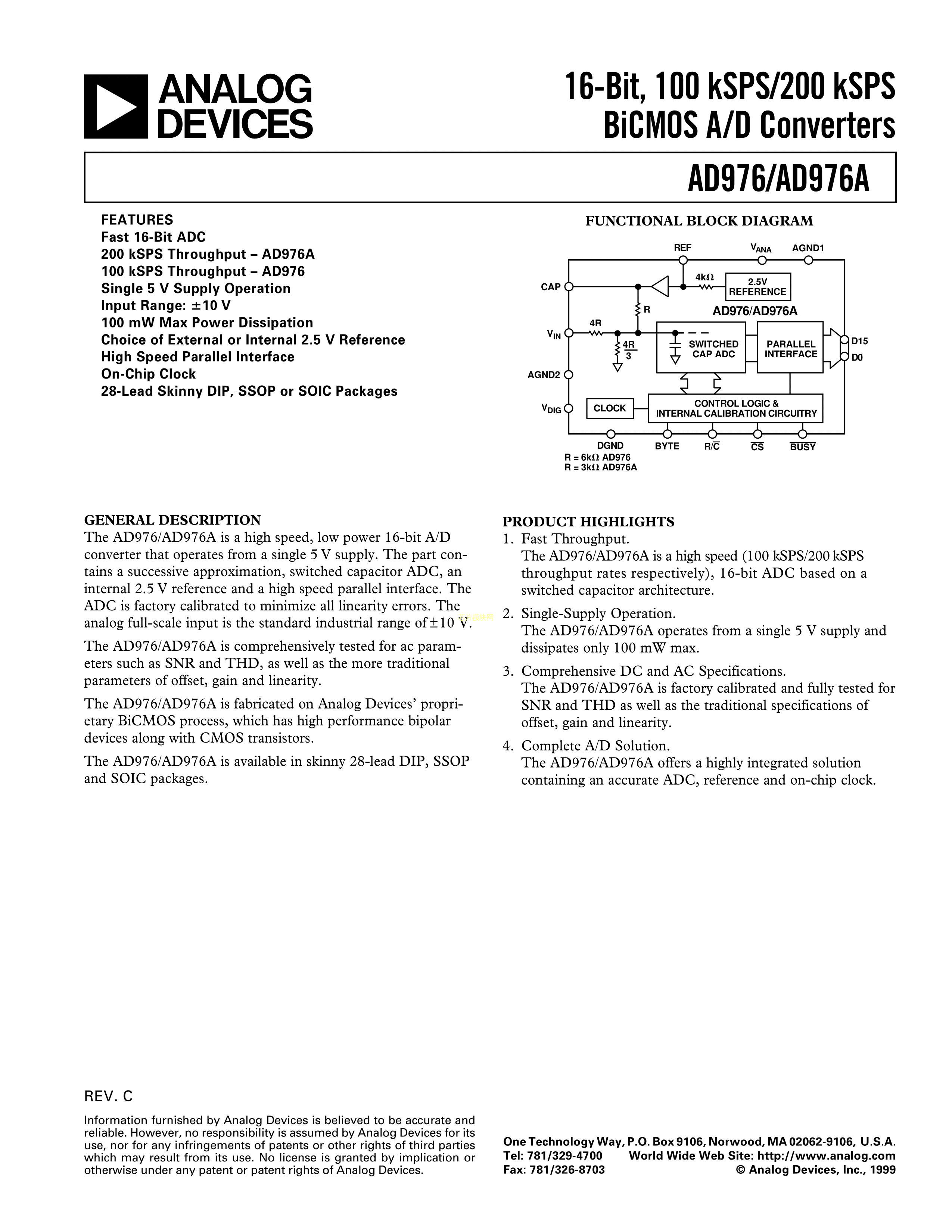 AD976AARSZ数据手册SSOP-28封装ADI(亚德诺)-LINEARPDF规格书,中英文下载