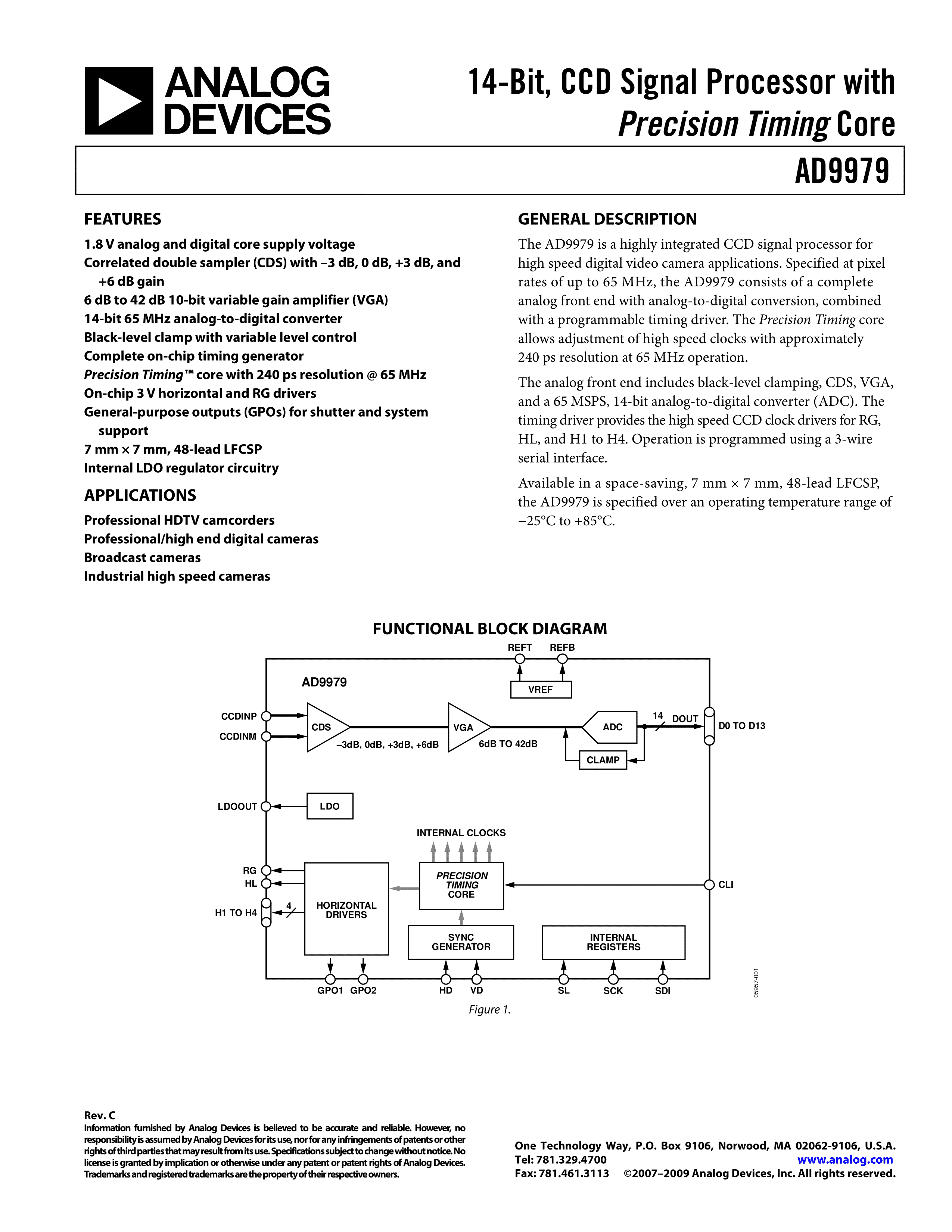 AD9979BCPZ数据手册LFCSP-48封装ADI(亚德诺)-LINEARPDF规格书,中英文下