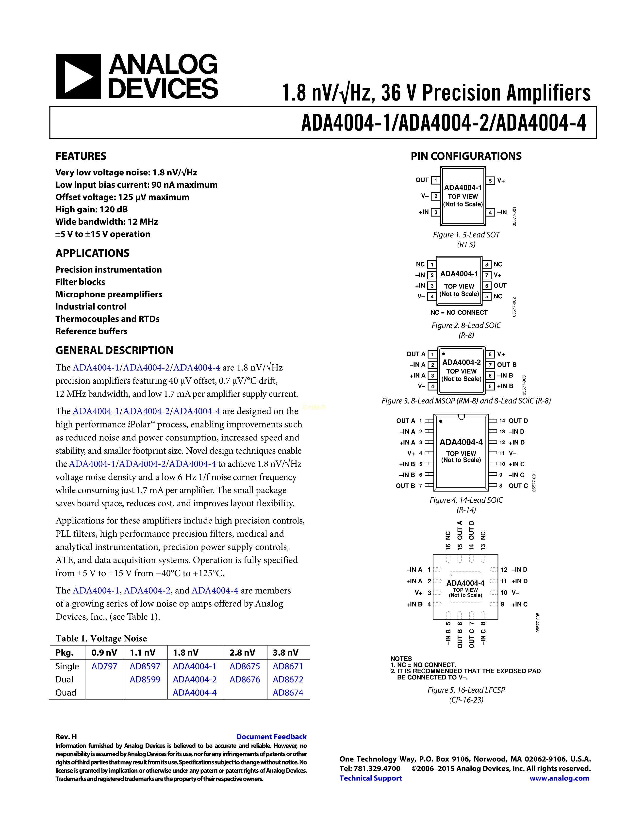 ADA4004-4ARZ数据手册SOIC-14封装ADI(亚德诺)-LINEARPDF规格书,中英文