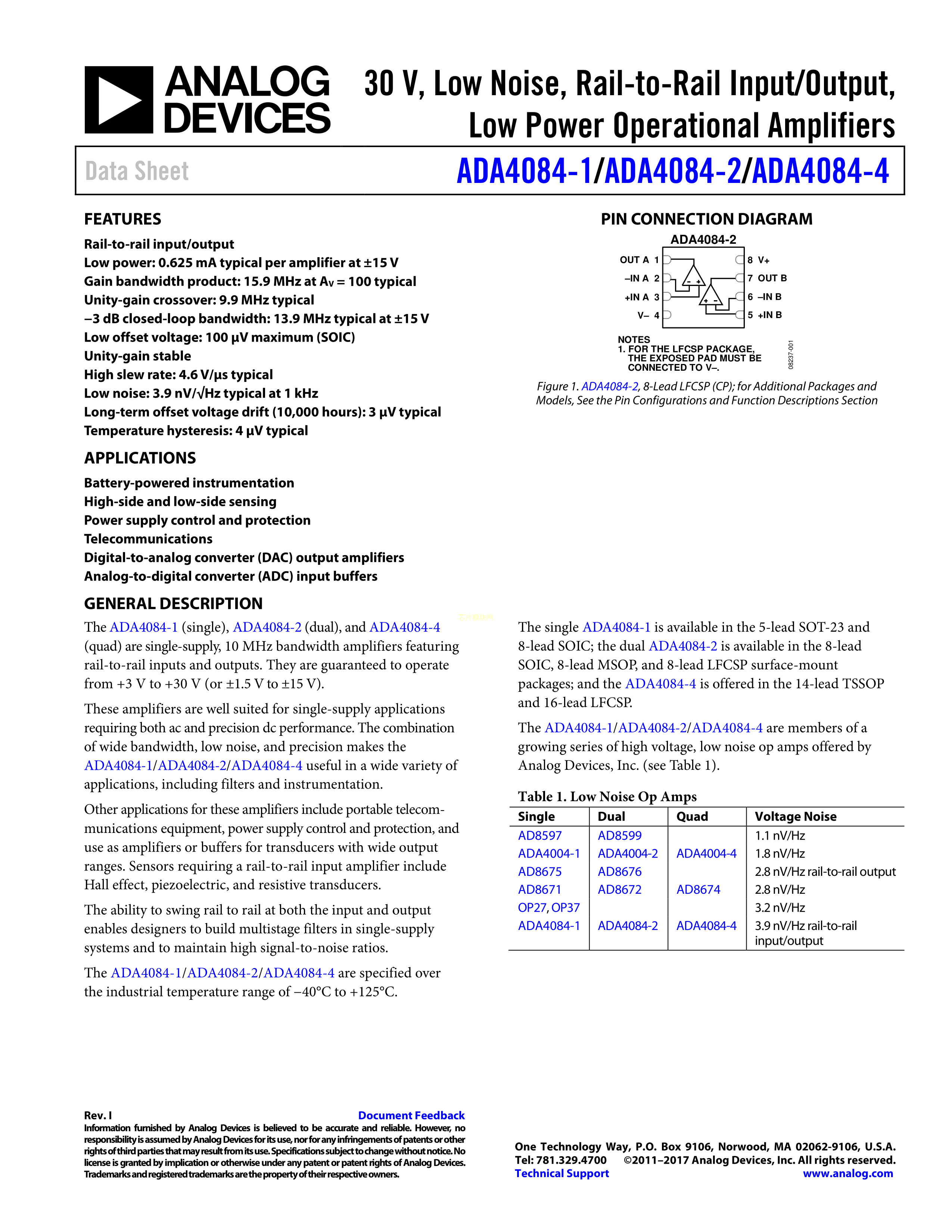 ADA4084-2ACPZ-R7数据手册LFCSP-8封装ADI(亚德诺)-LINEARPDF规格书
