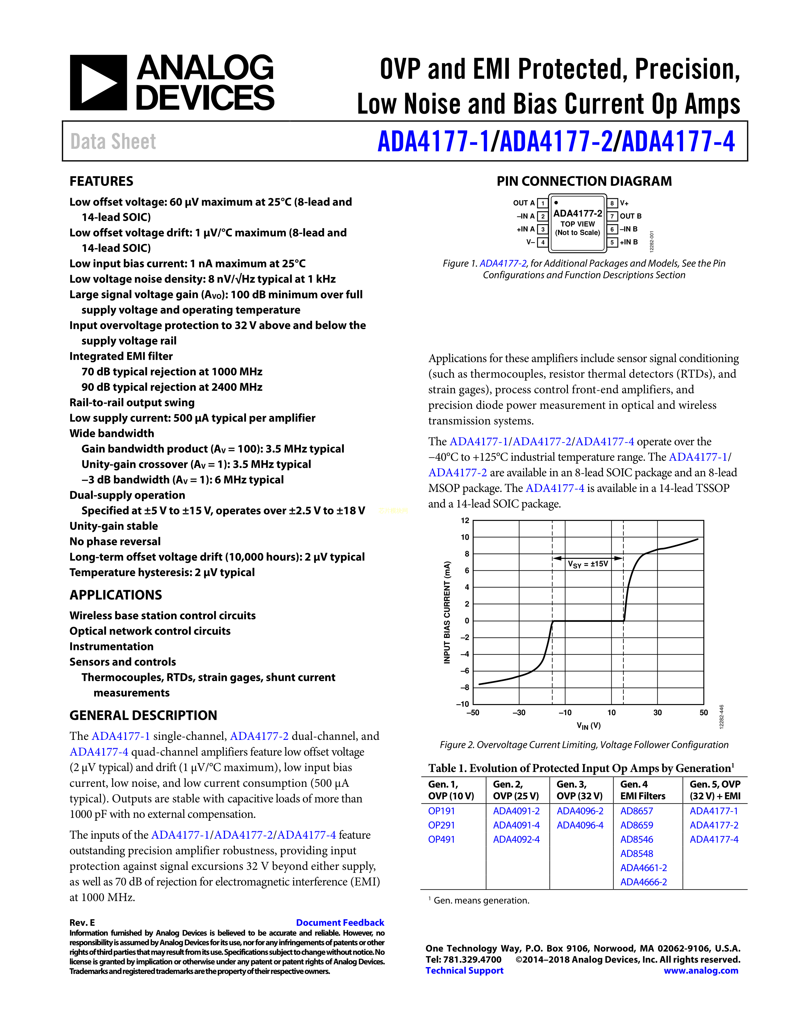 ADA4177-1ARMZ数据手册MSOP-8封装ADI(亚德诺)-LINEARPDF规格书,中英文