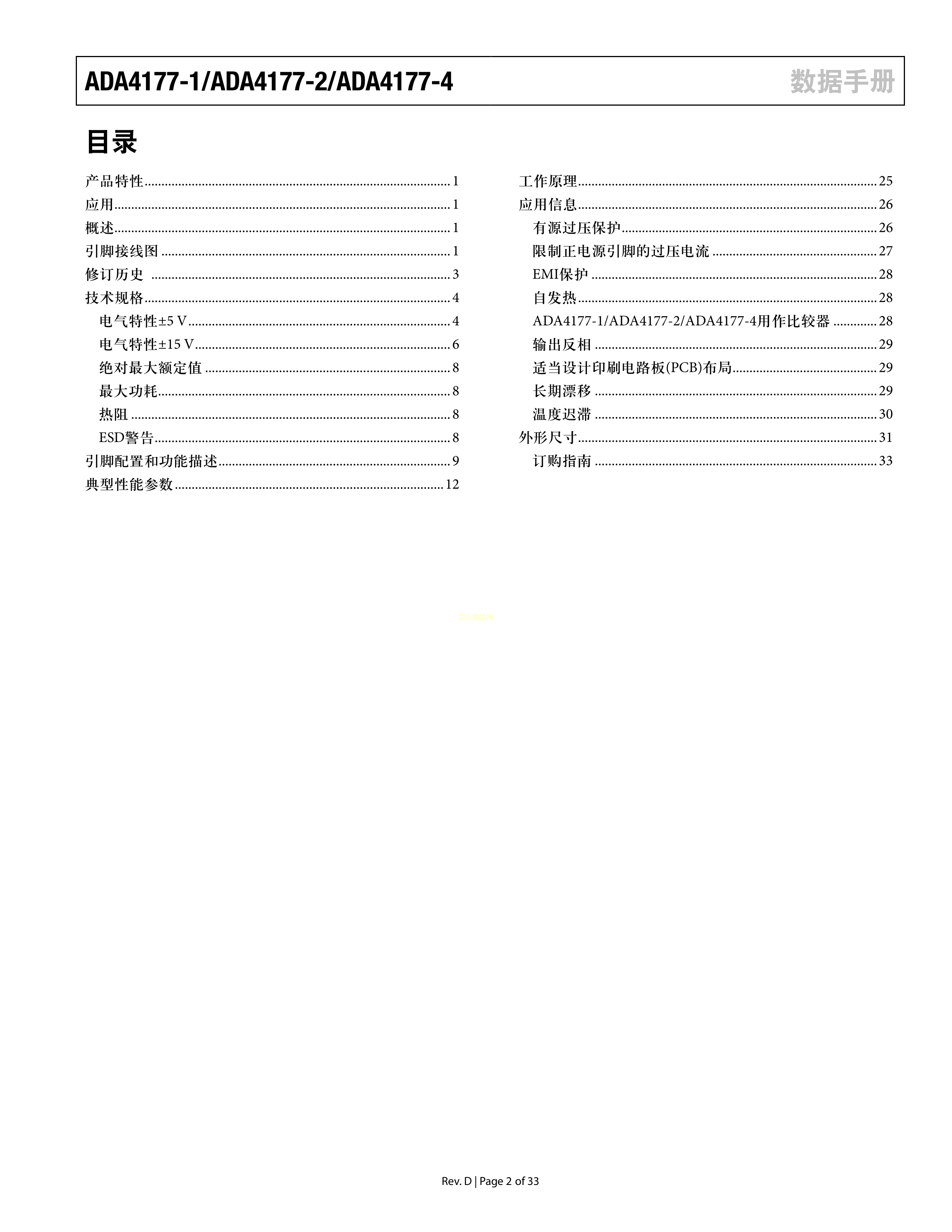 ADA4177-1ARZ数据手册SOIC-8_150mil封装ADI(亚德诺)-LINEARPDF规