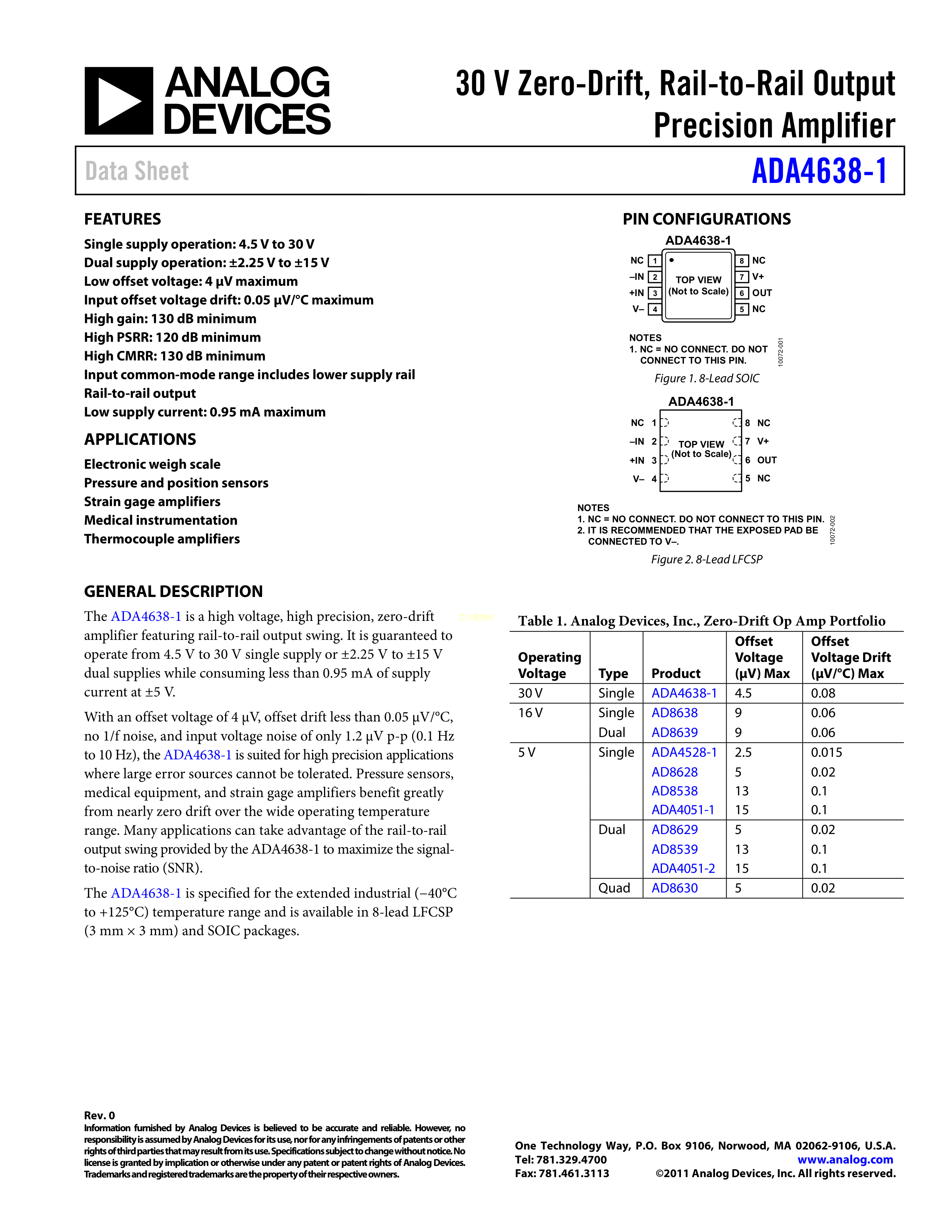 ADA4638-1ACPZ-R7数据手册LFCSP-8封装ADI(亚德诺)-LINEARPDF规格书