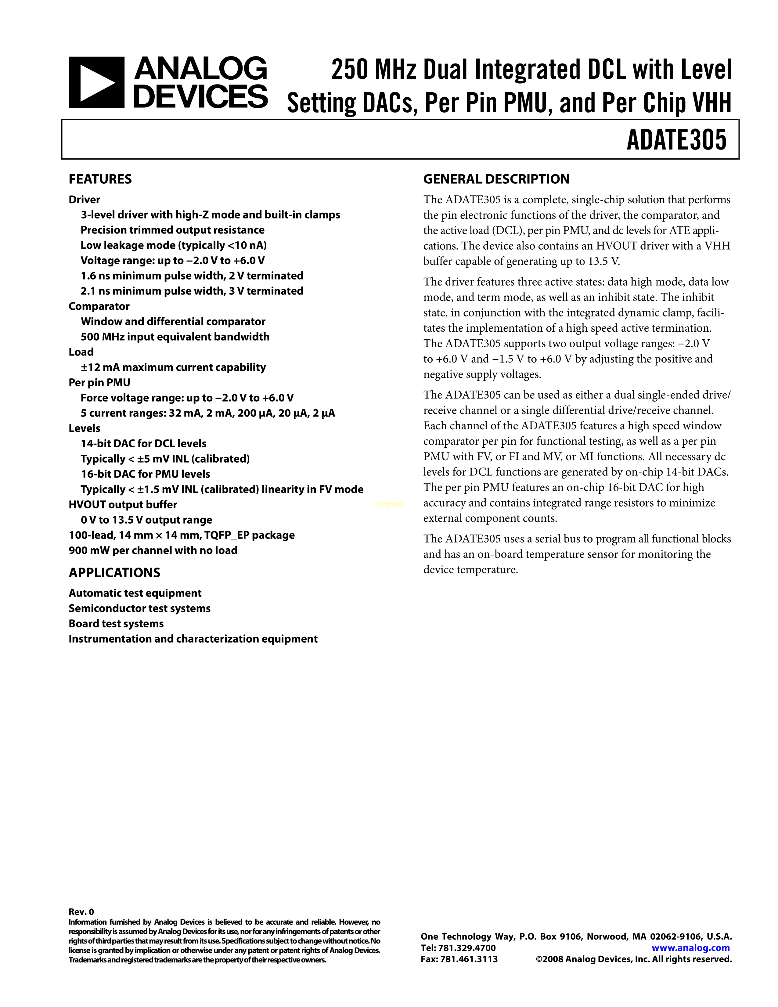 ADATE305BSVZ数据手册TQFP-100封装ADI(亚德诺)-LINEARPDF规格书,中英