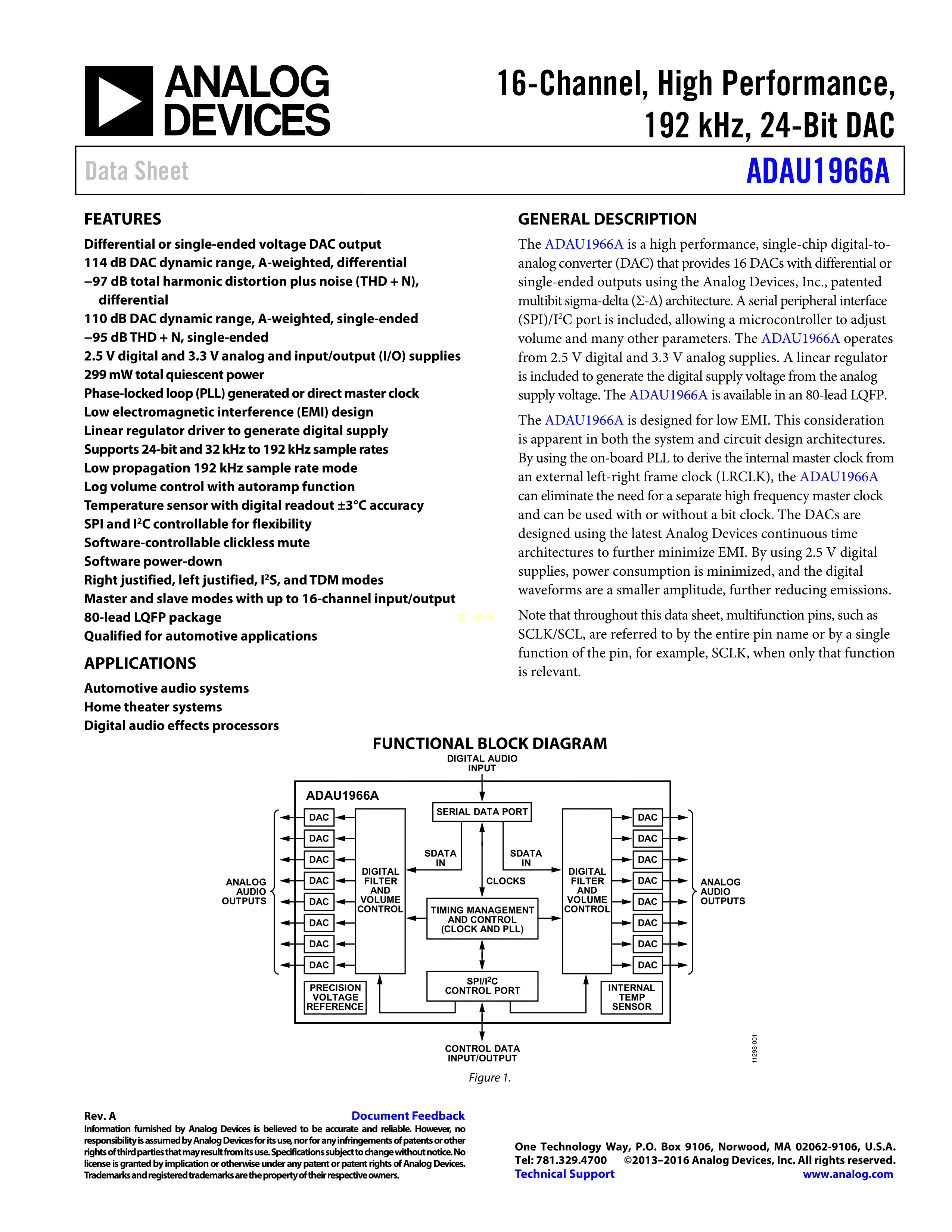 ADAU1966AWBSTZ数据手册LQFP-80封装ADI(亚德诺)-LINEARPDF规格书,中