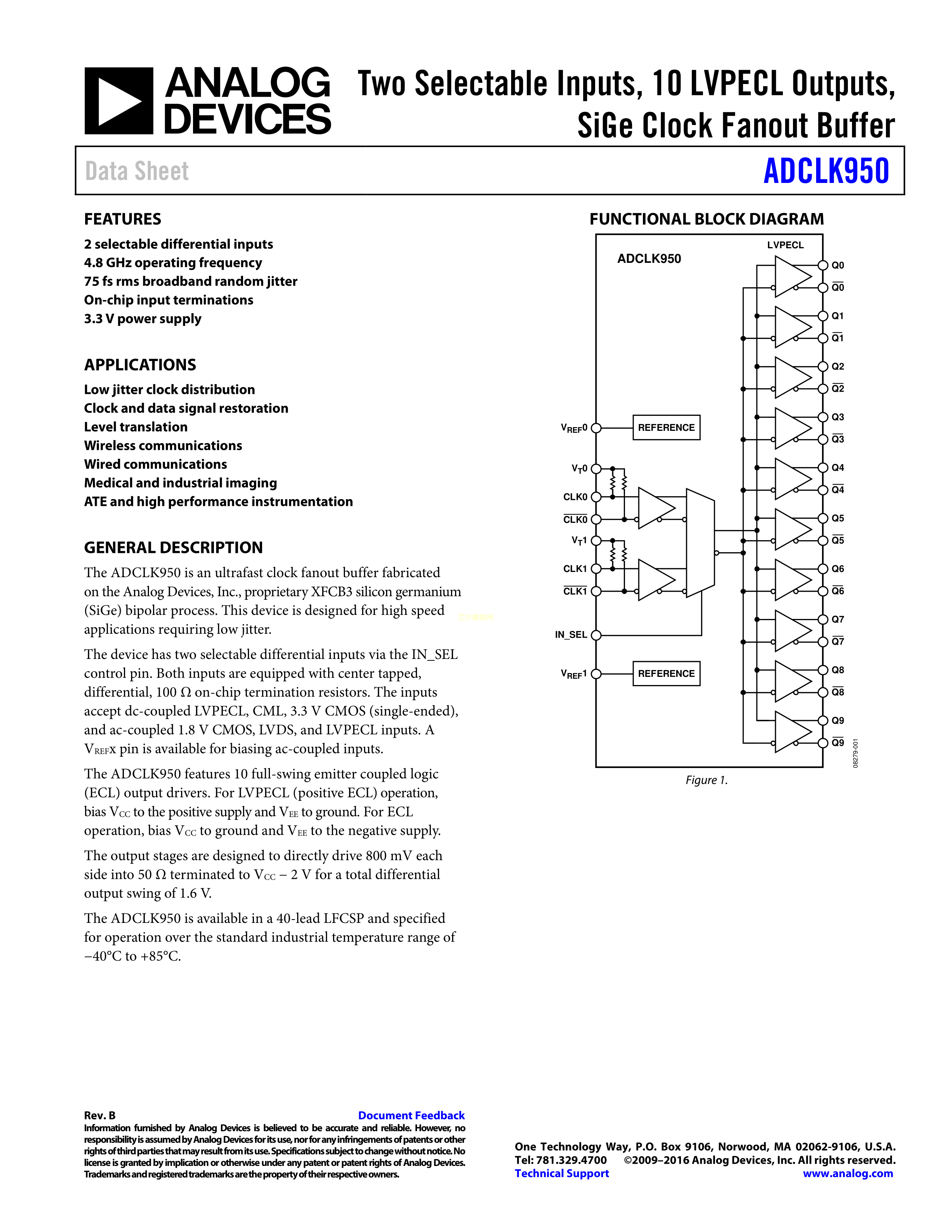 ADCLK950BCPZ数据手册LFCSP-40封装ADI(亚德诺)-LINEARPDF规格书,中英
