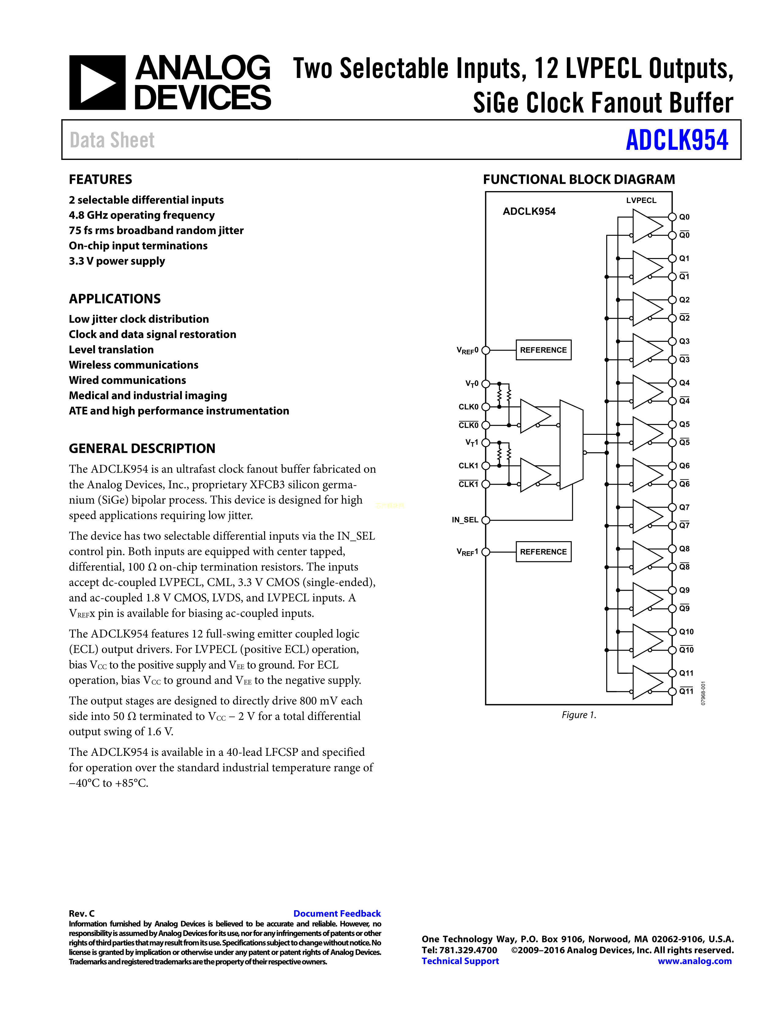 ADCLK954BCPZ-REEL7数据手册LFCSP-40封装ADI(亚德诺)-LINEARPDF