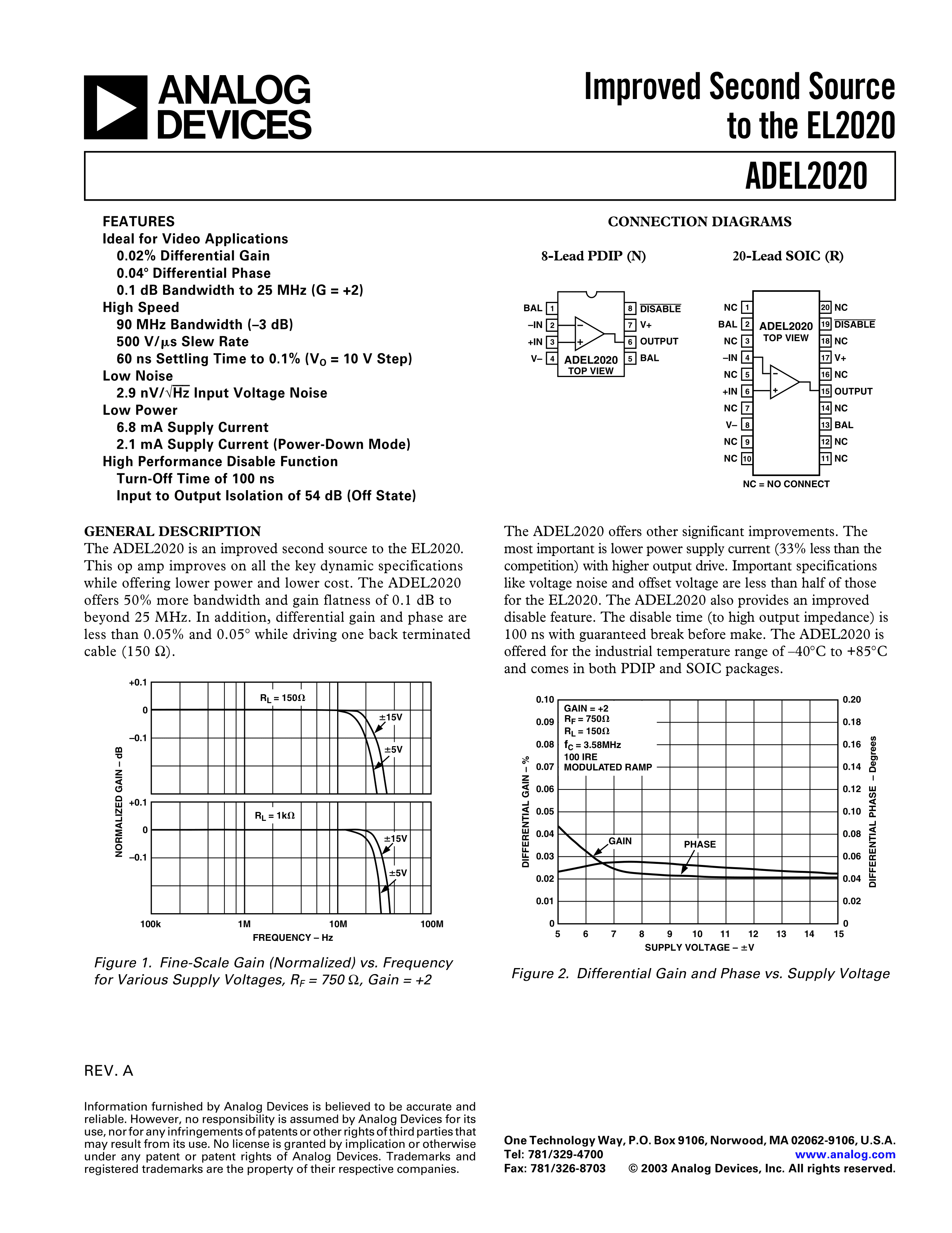 ADEL2020ANZ数据手册PDIP-8封装ADI(亚德诺)-LINEARPDF规格书,中英文下载