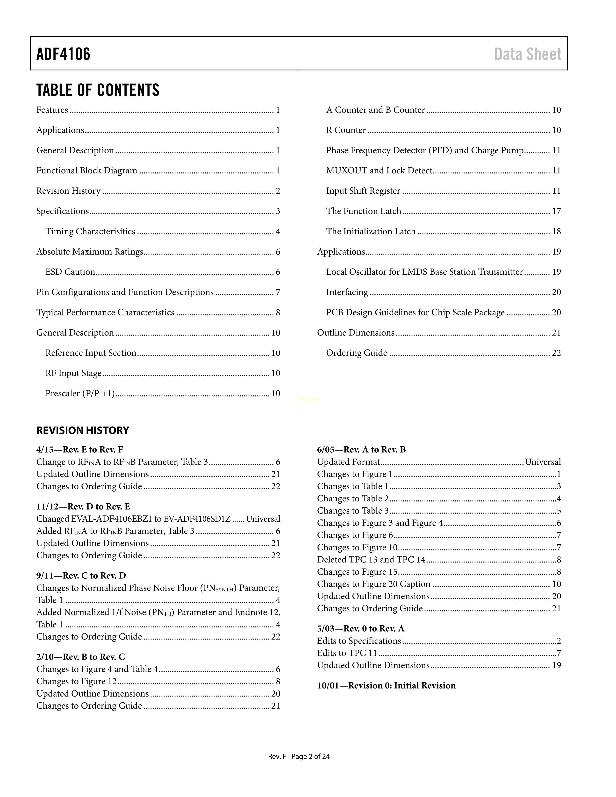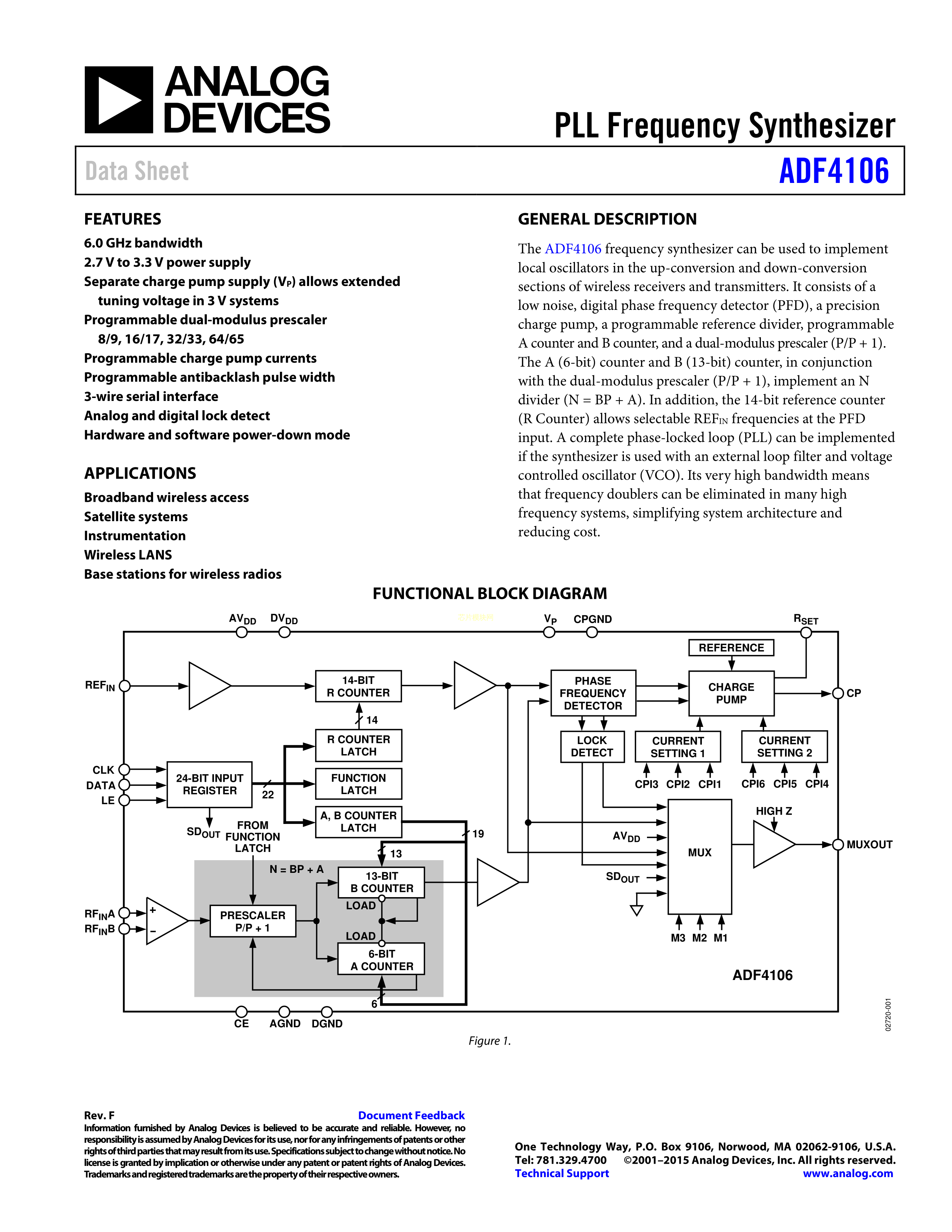 ADF4106BCPZ-R7数据手册LFCSP-20封装ADI(亚德诺)-LINEARPDF规格书,