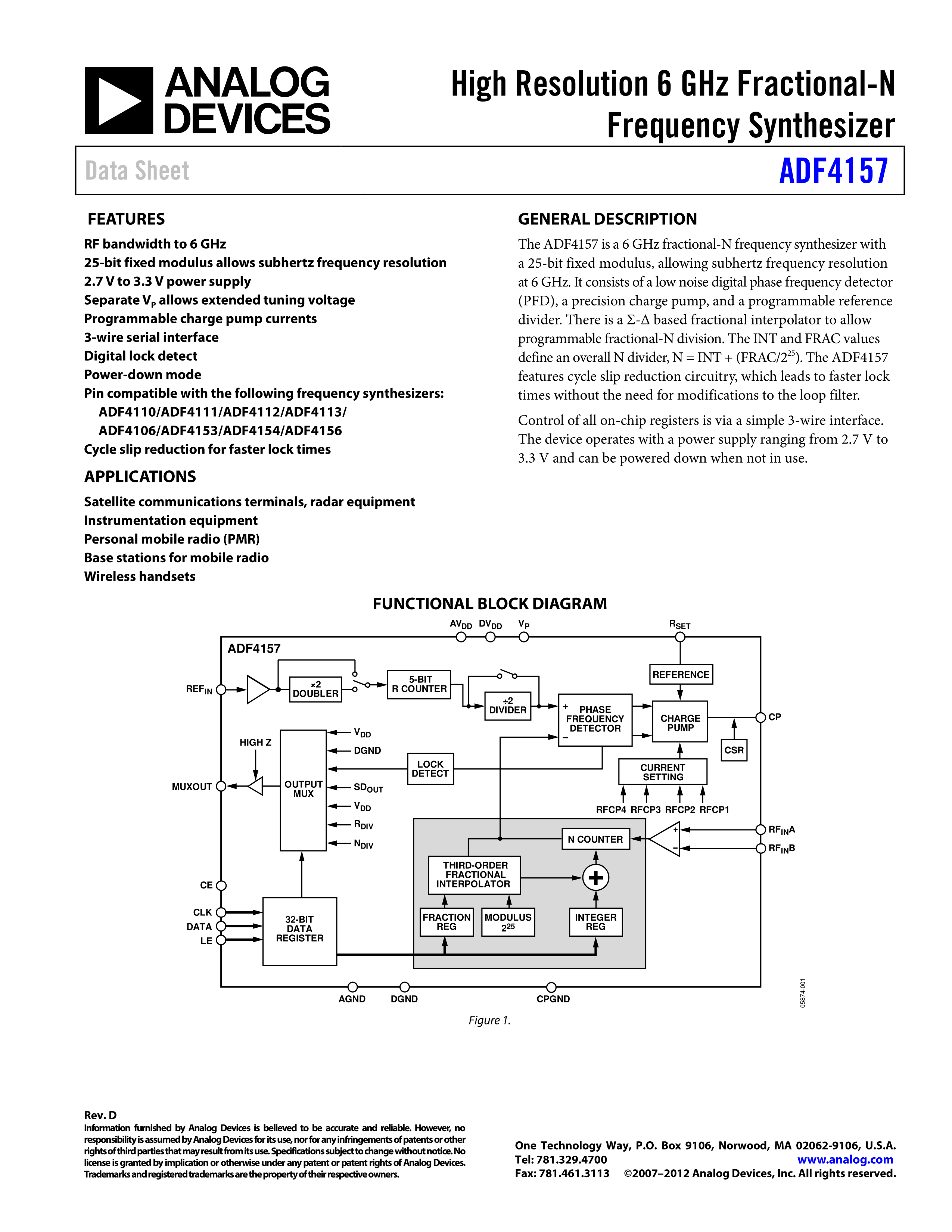 ADF4157BRUZ-RL7数据手册TSSOP-16封装ADI(亚德诺)-LINEARPDF规格书