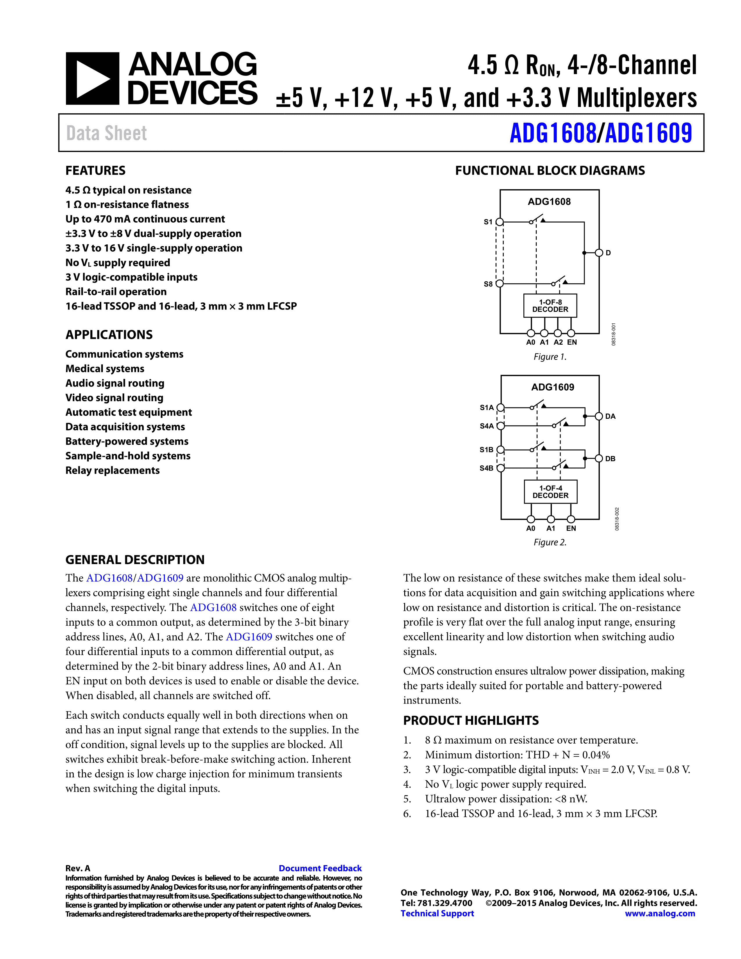 ADG1608BCPZ-REEL7数据手册LFCSP-16封装ADI(亚德诺)-LINEARPDF规