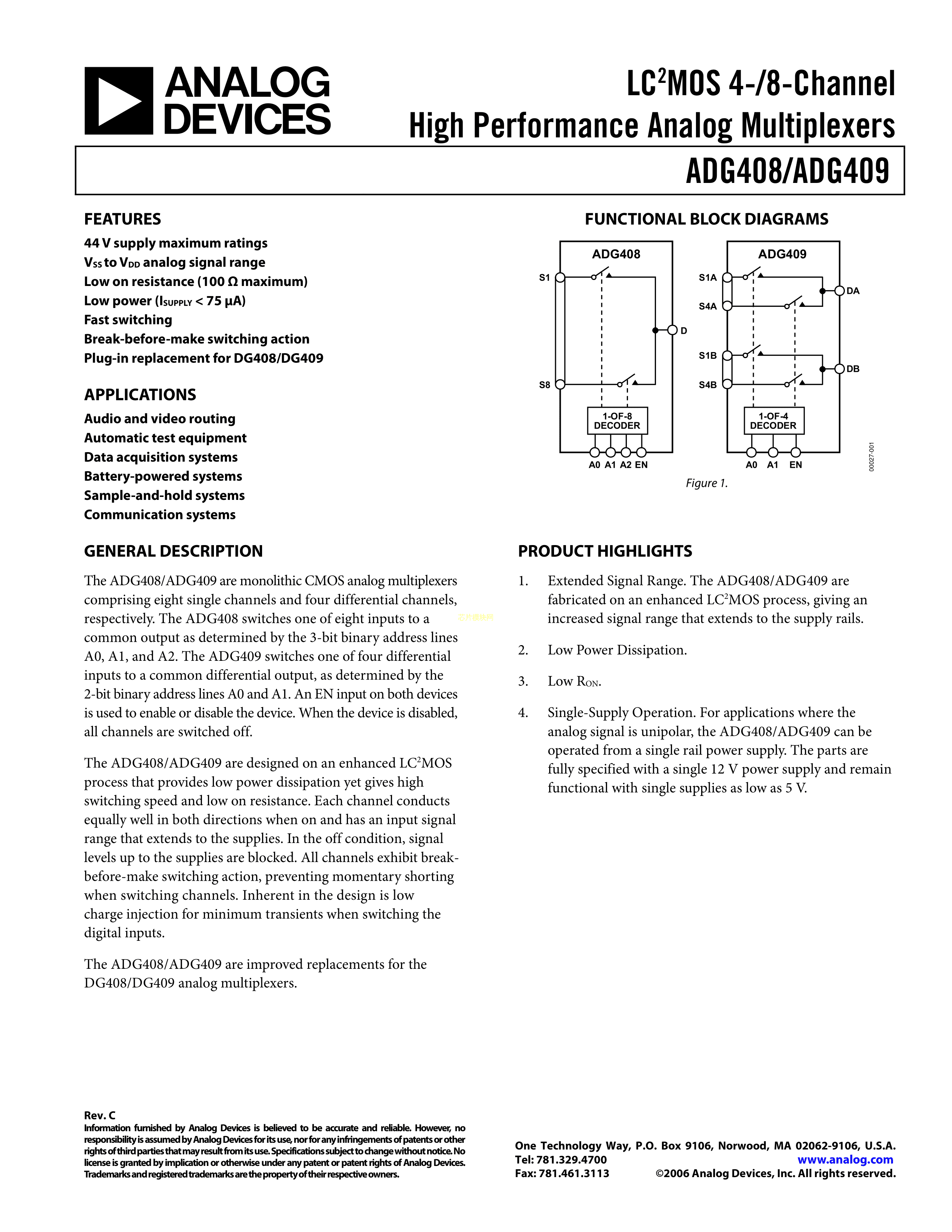 ADG408BRUZ-REEL7数据手册TSSOP-16封装ADI(亚德诺)-LINEARPDF规格