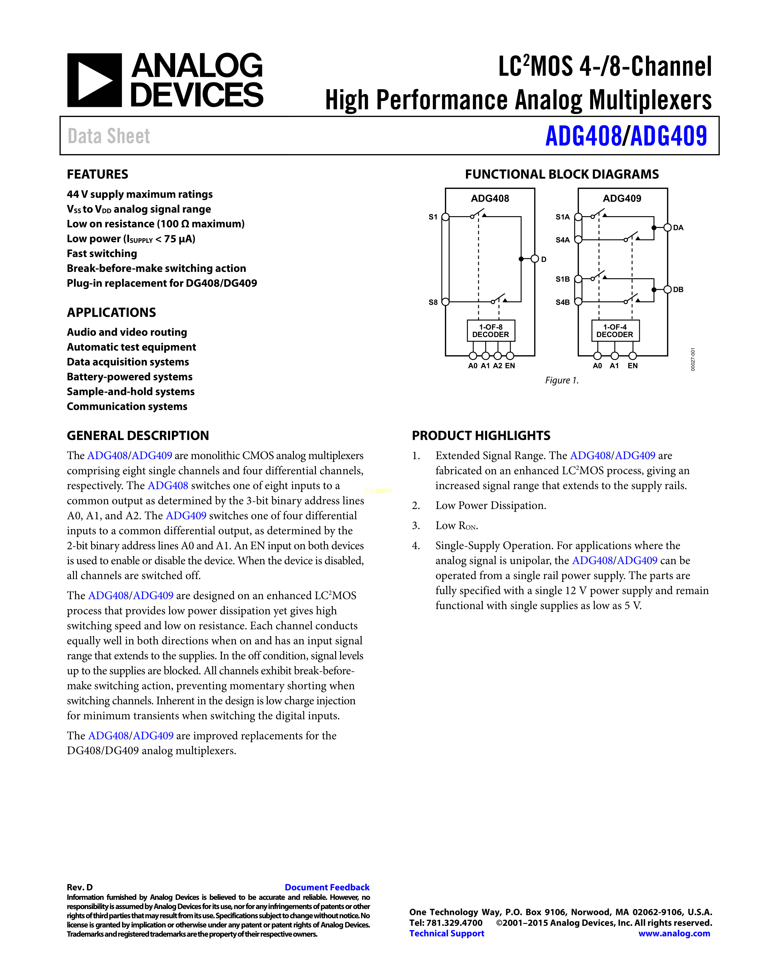 ADG409BRZ数据手册SOIC-16_150mil封装ADI(亚德诺)-LINEARPDF规格书