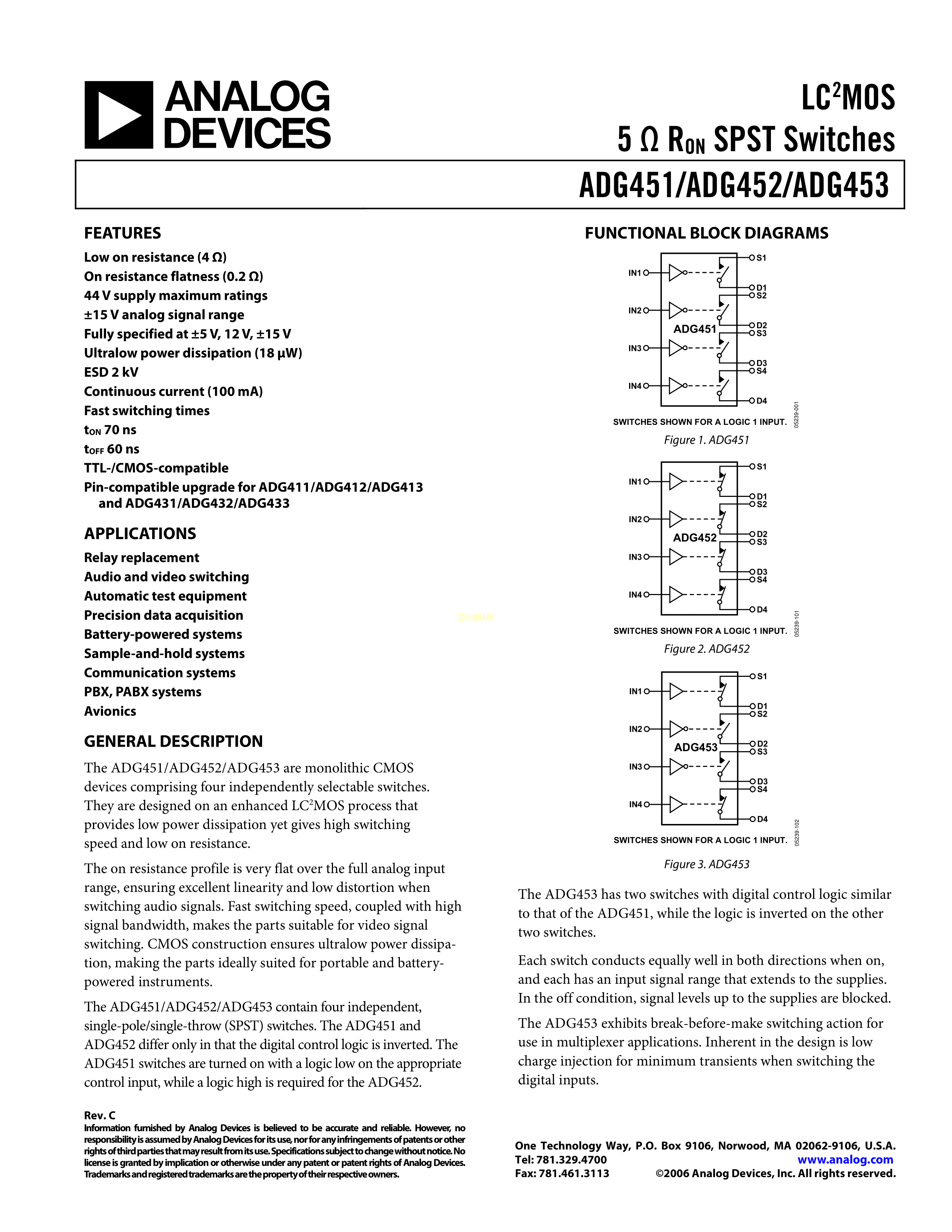 ADG451BRUZ数据手册TSSOP-16封装ADI(亚德诺)-LINEARPDF规格书,中英文下