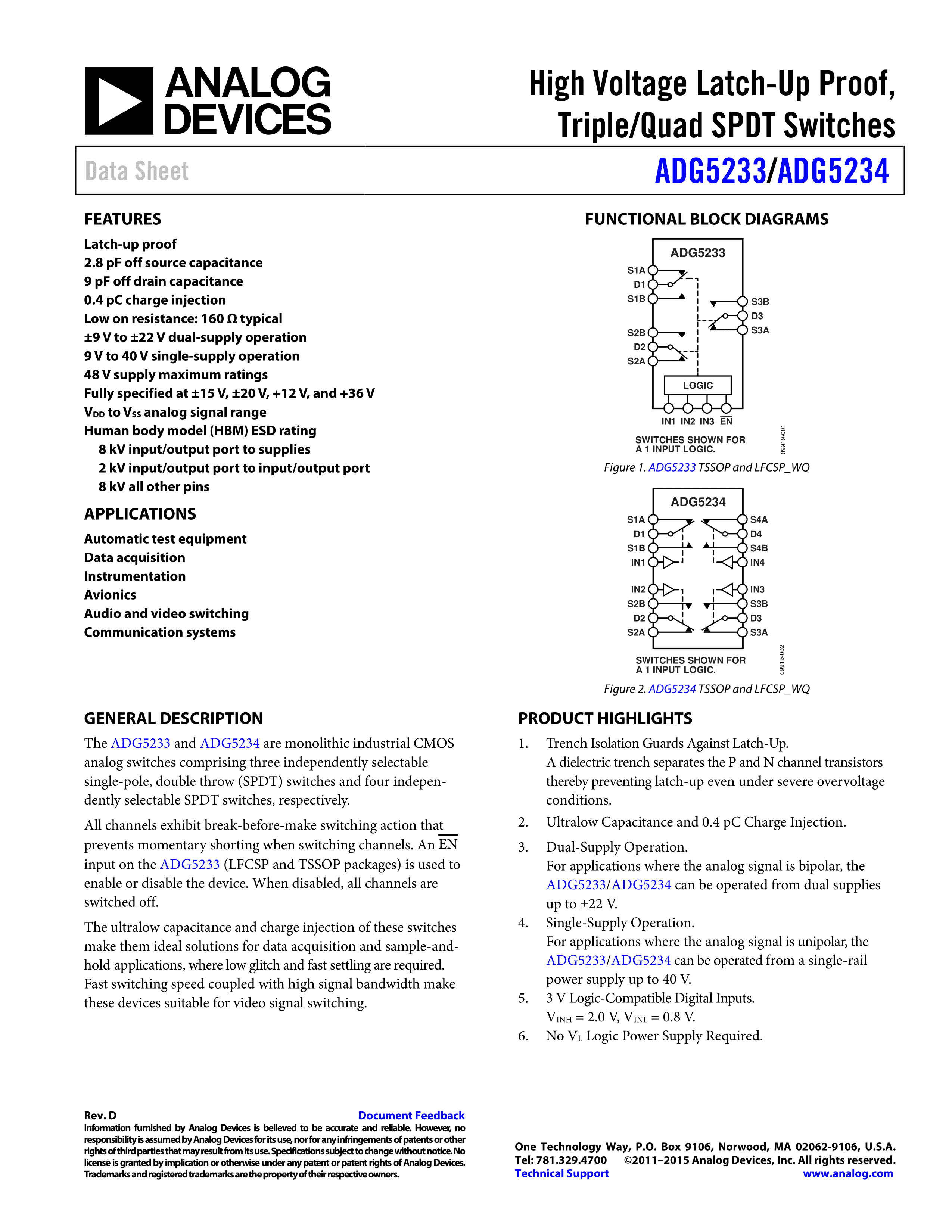 ADG5234BCPZ-RL7数据手册LFCSP-20封装ADI(亚德诺)-LINEARPDF规格书