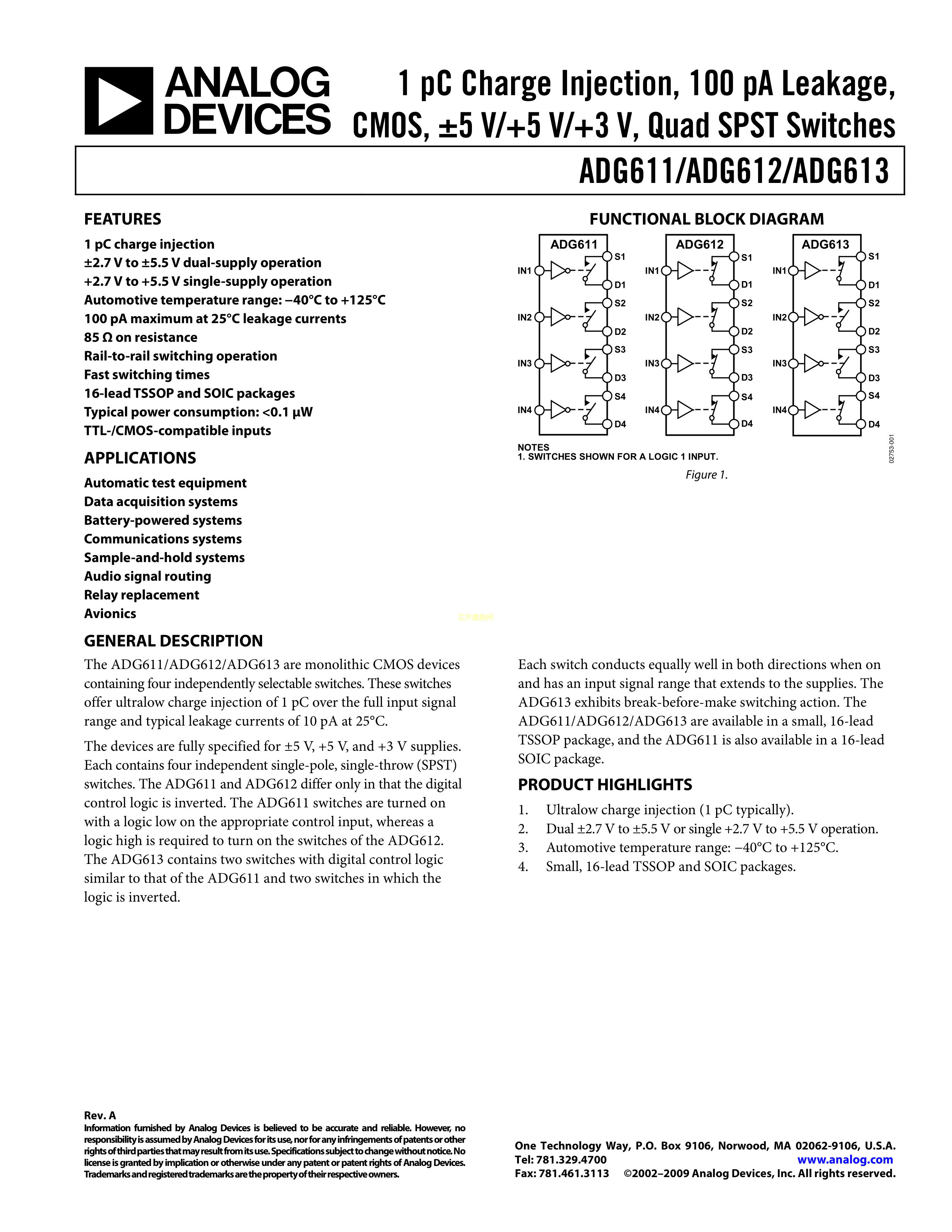 ADG612YRUZ数据手册TSSOP-16封装ADI(亚德诺)-LINEARPDF规格书,中英文下