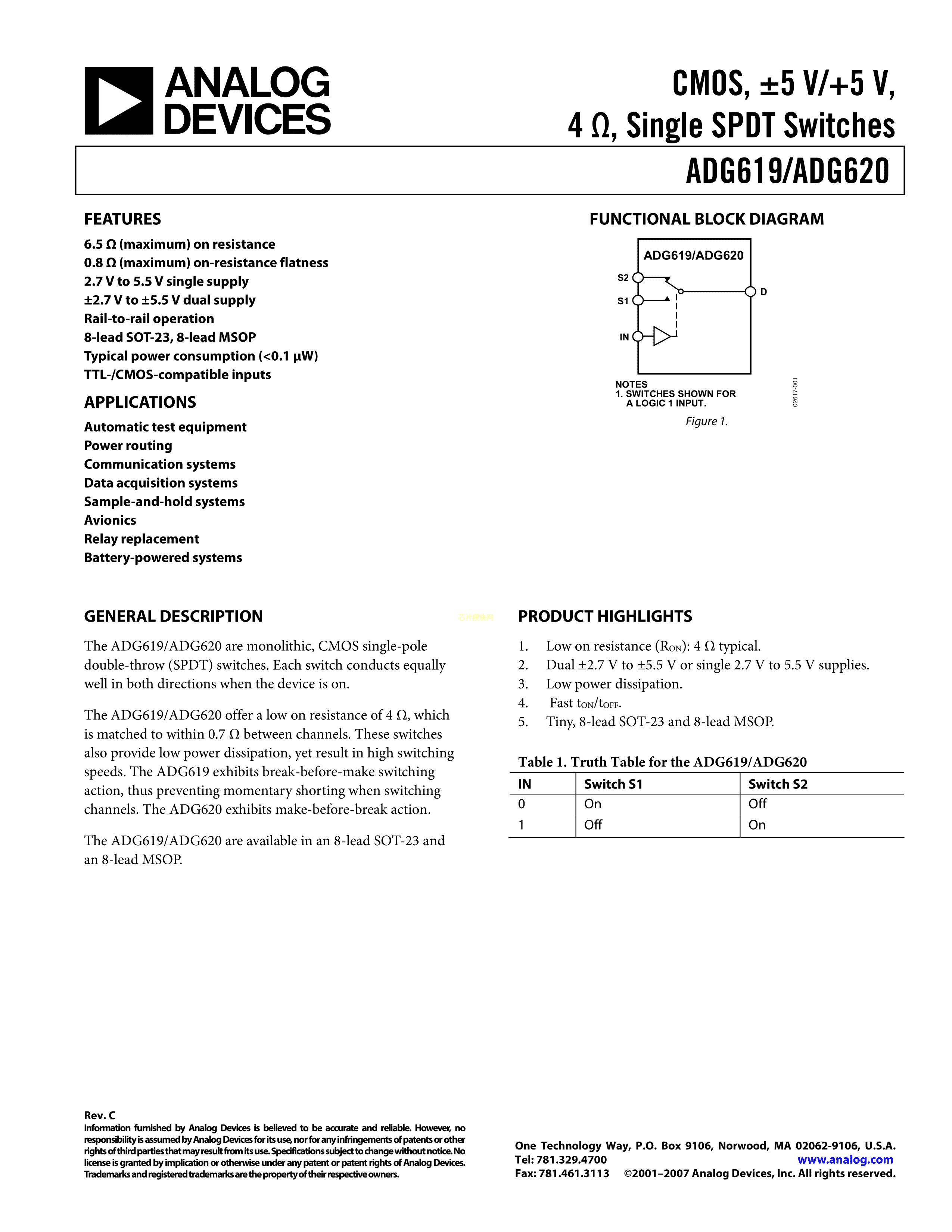 ADG619BRTZ-REEL7数据手册SOT-23-8封装ADI(亚德诺)-LINEARPDF规格