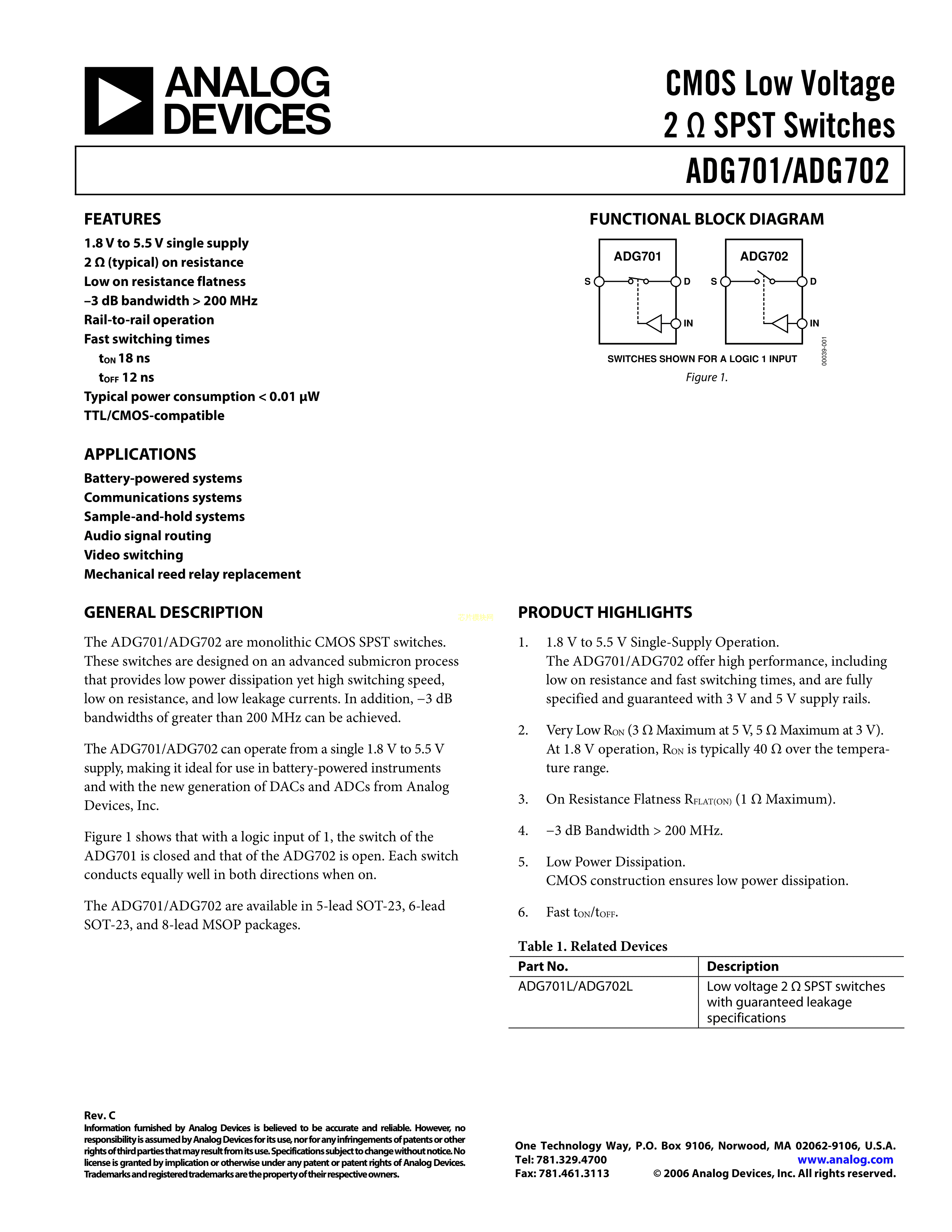 ADG701BRJZ-REEL7数据手册SOT-23-5封装ADI(亚德诺)-LINEARPDF规格
