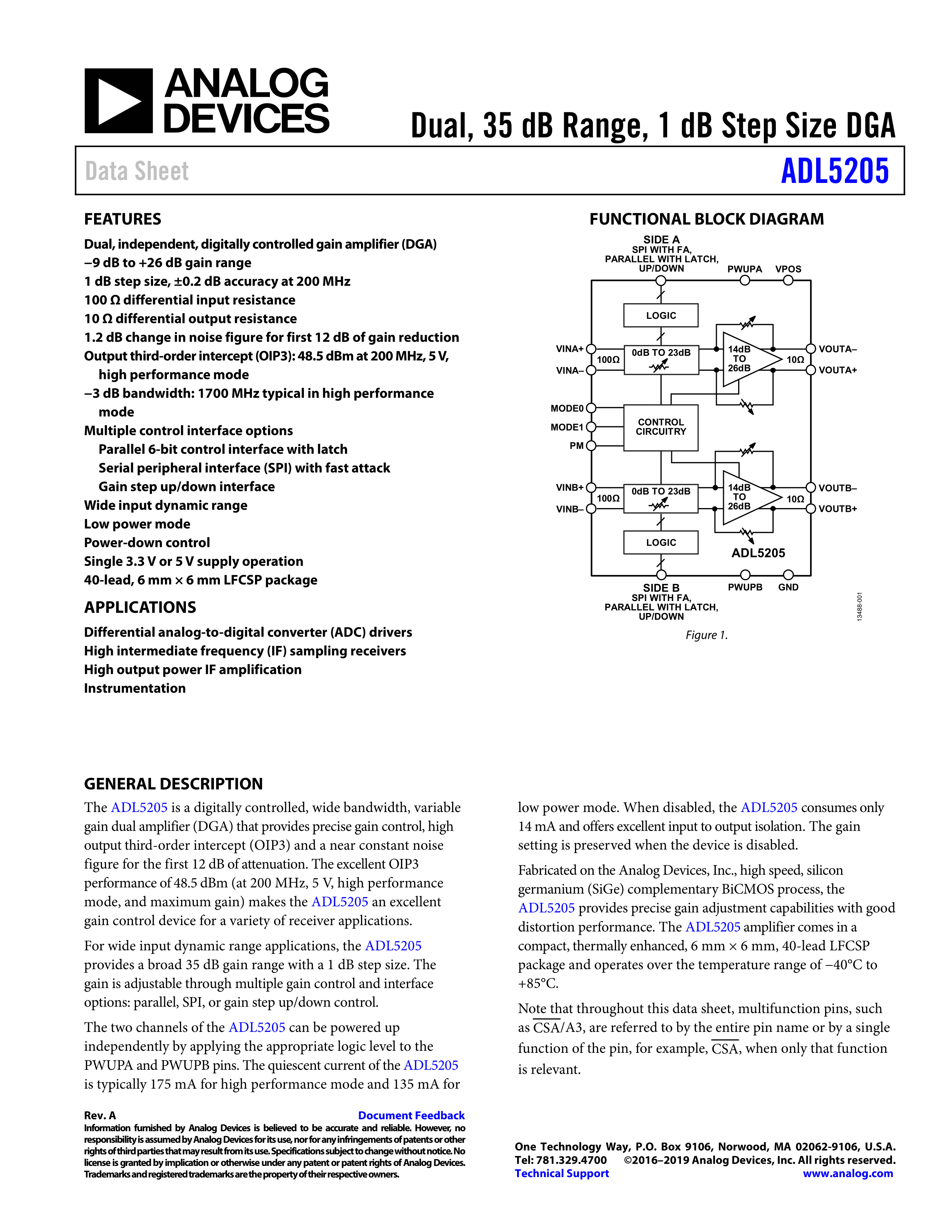 ADL5205ACPZ-R7数据手册LFCSP-40封装ADI(亚德诺)-LINEARPDF规格书,