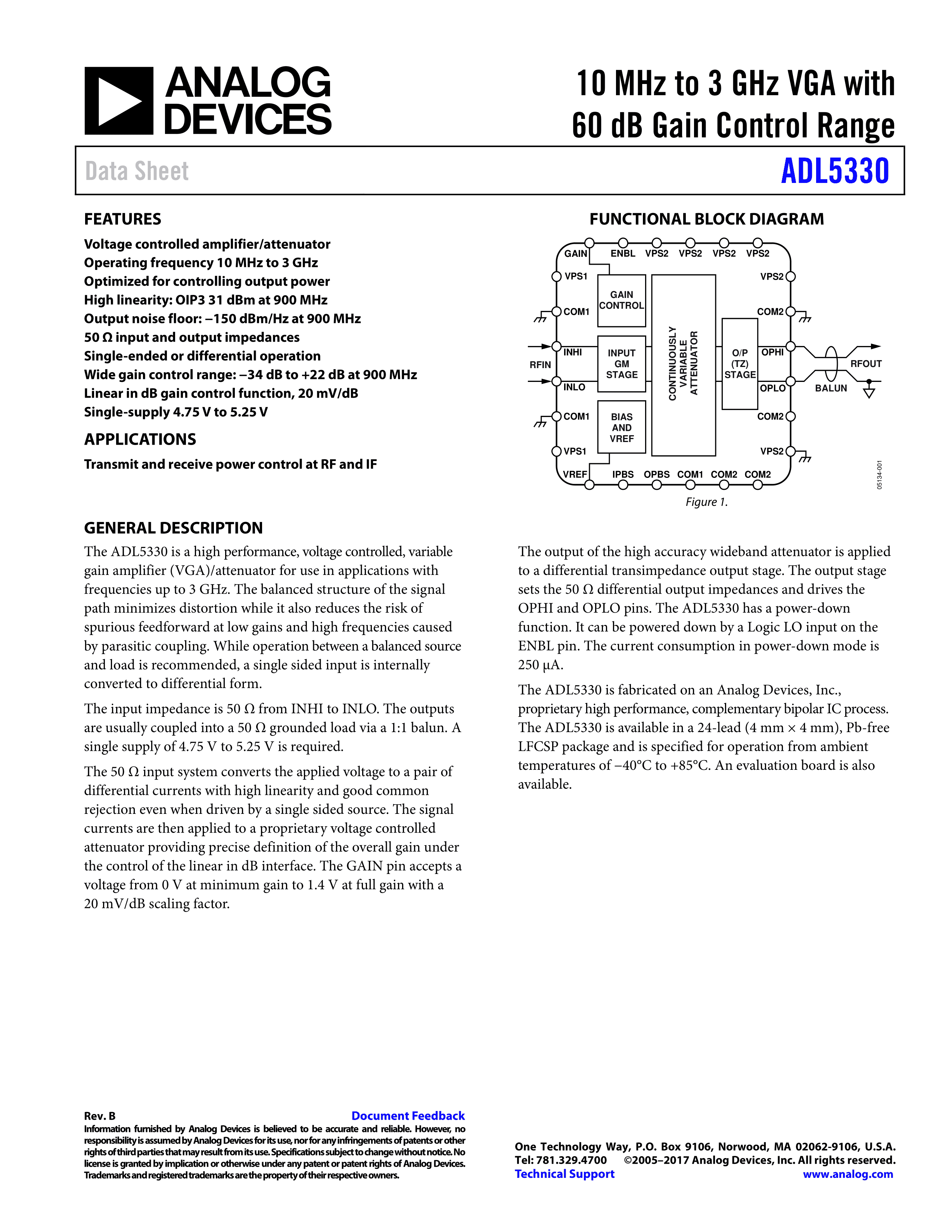 ADL5330ACPZ-REEL7数据手册LFCSP-24封装ADI(亚德诺)-LINEARPDF规