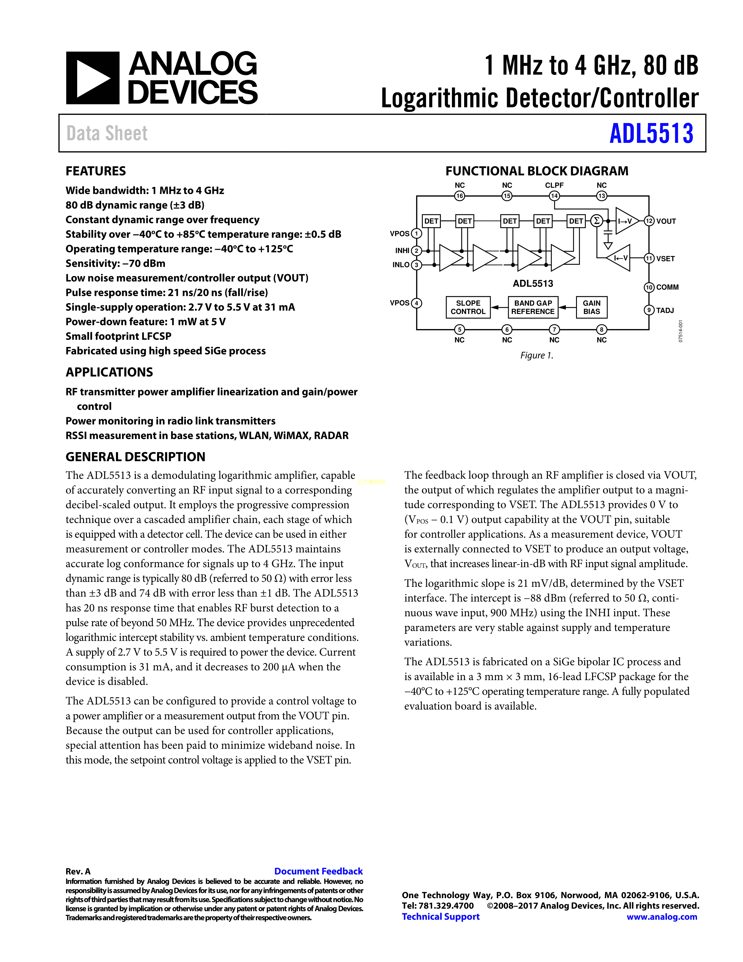 ADL5513ACPZ-R7数据手册LFCSP-16封装ADI(亚德诺)-LINEARPDF规格书,中英文下载