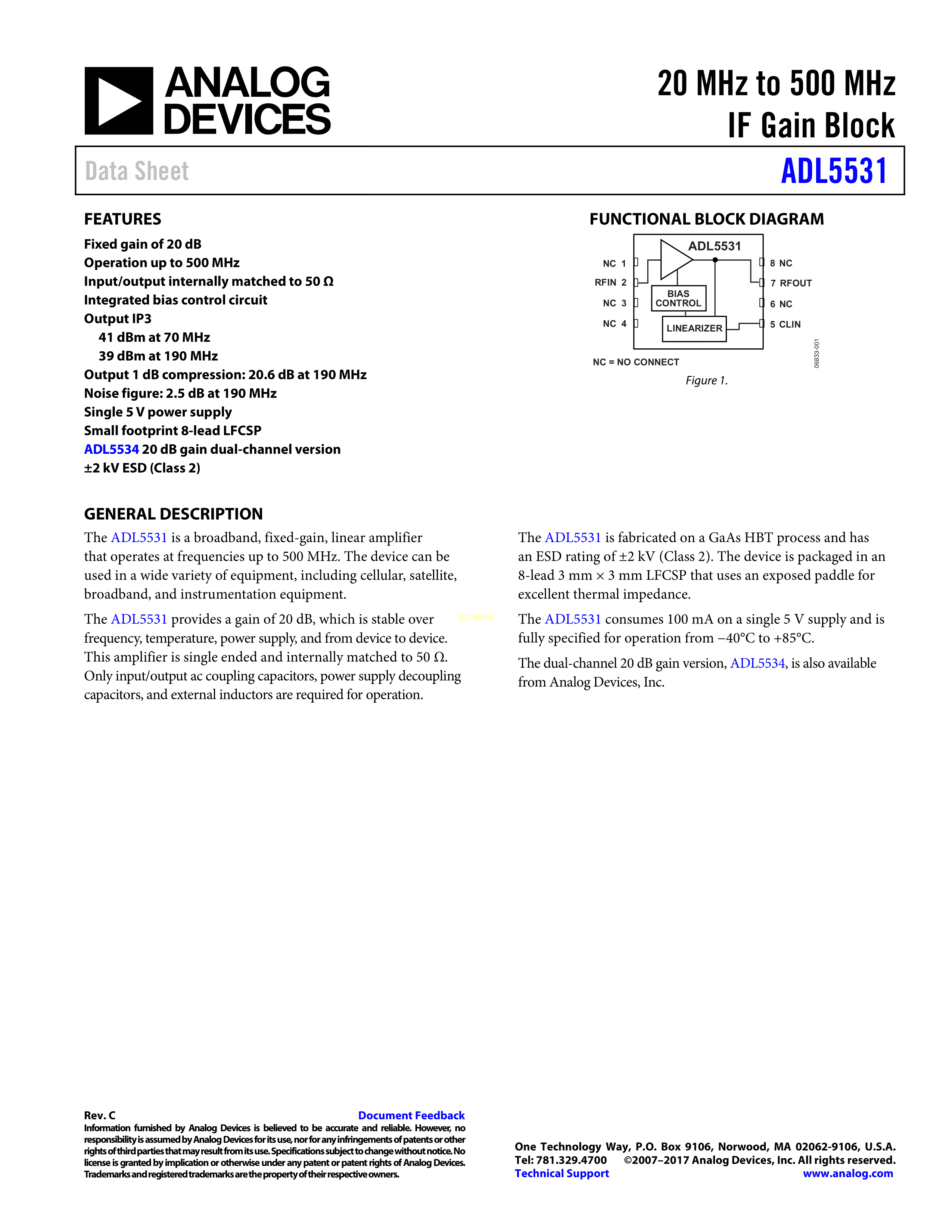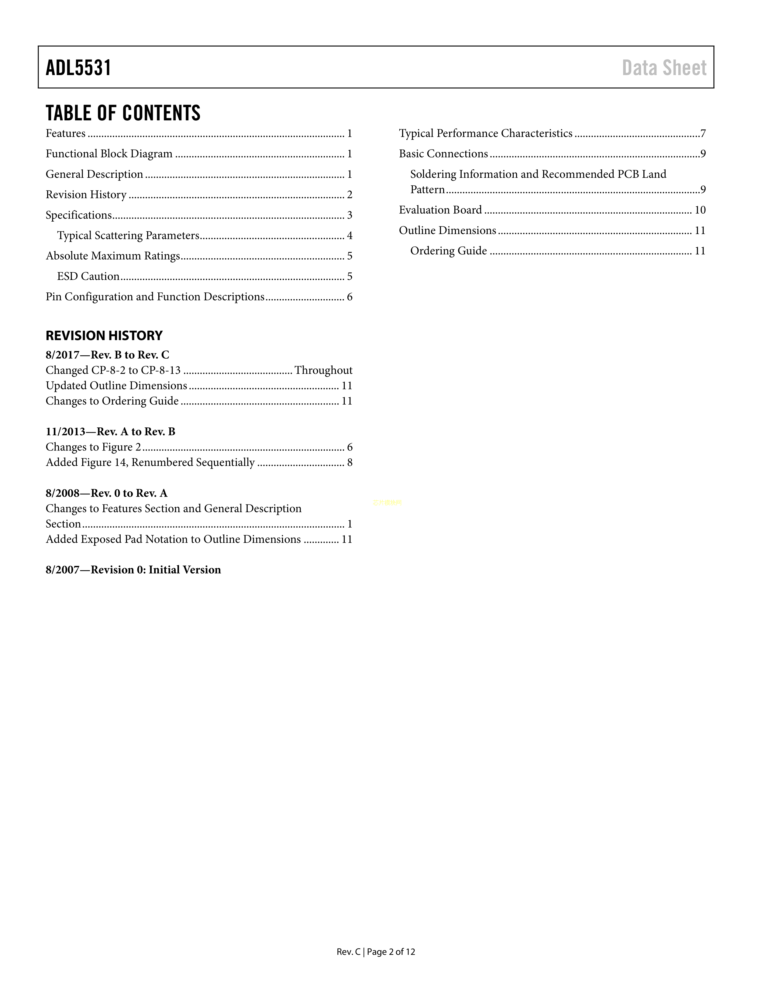 ADL5531ACPZ-R7数据手册LFCSP-8封装ADI(亚德诺)-LINEARPDF规格书,中英文下载