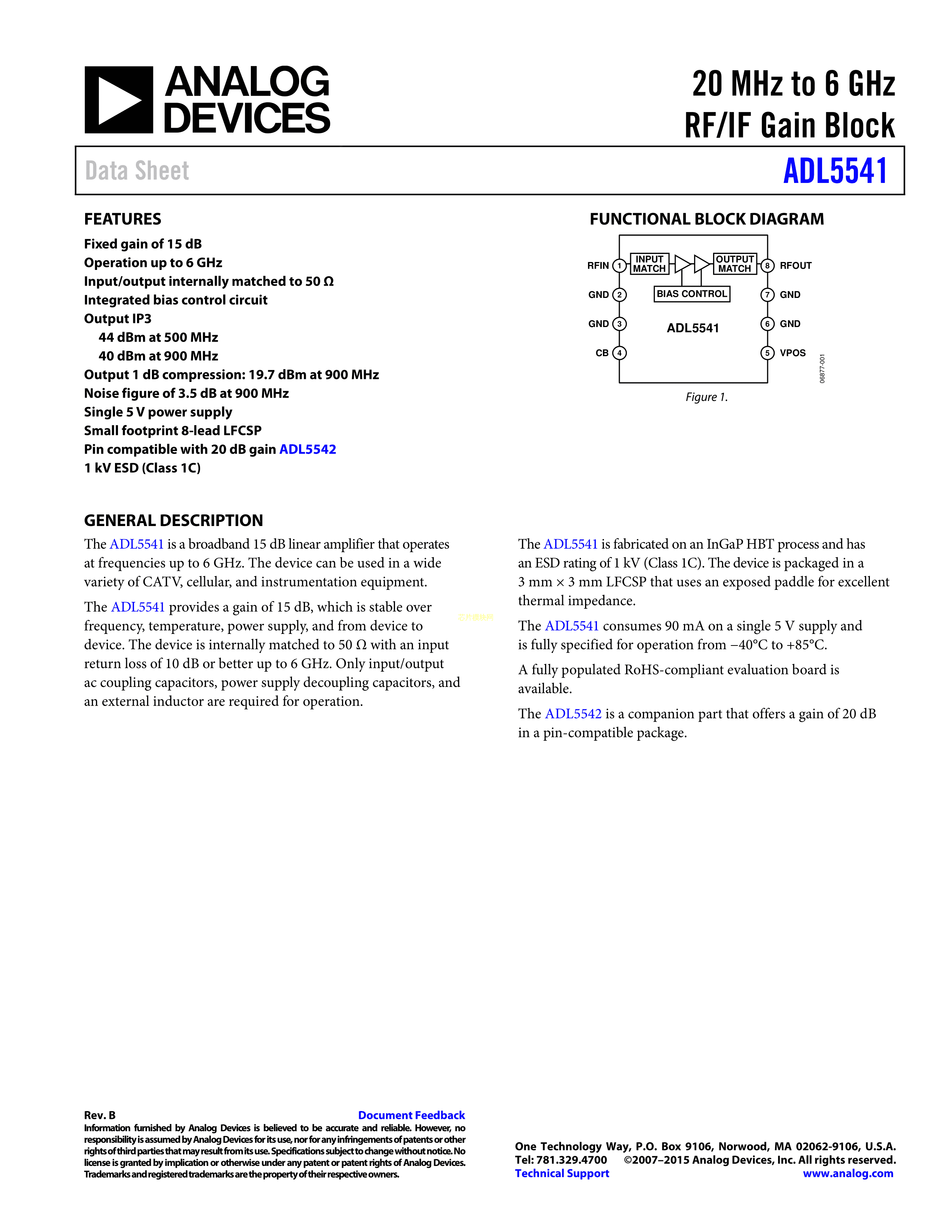 ADL5541ACPZ-R7数据手册LFCSP-8封装ADI(亚德诺)-LINEARPDF规格书,中英文下载