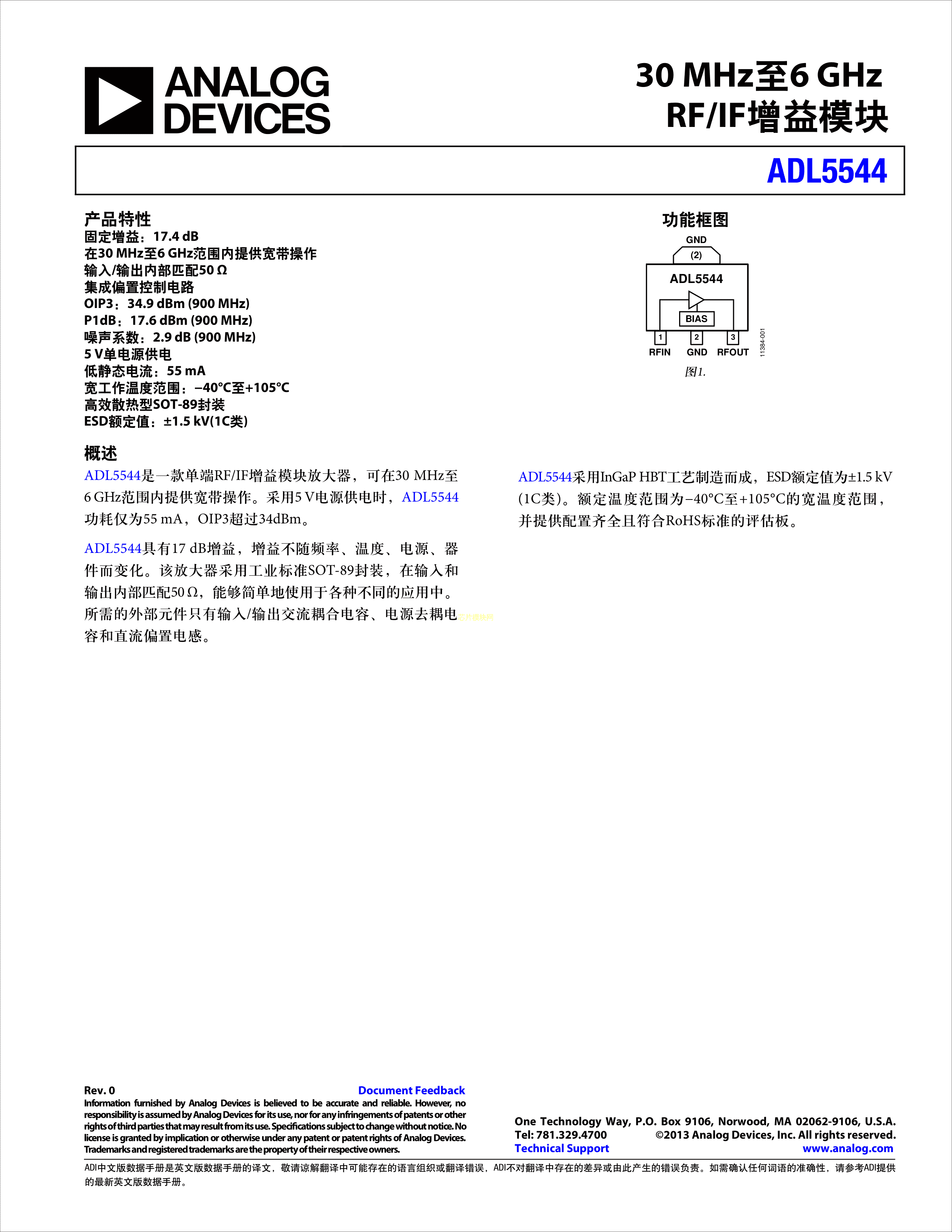 ADL5544ARKZ-R7数据手册SOT-89(SOT-89-3)封装ADI(亚德诺)-LINEARPDF规格书,中英文下载