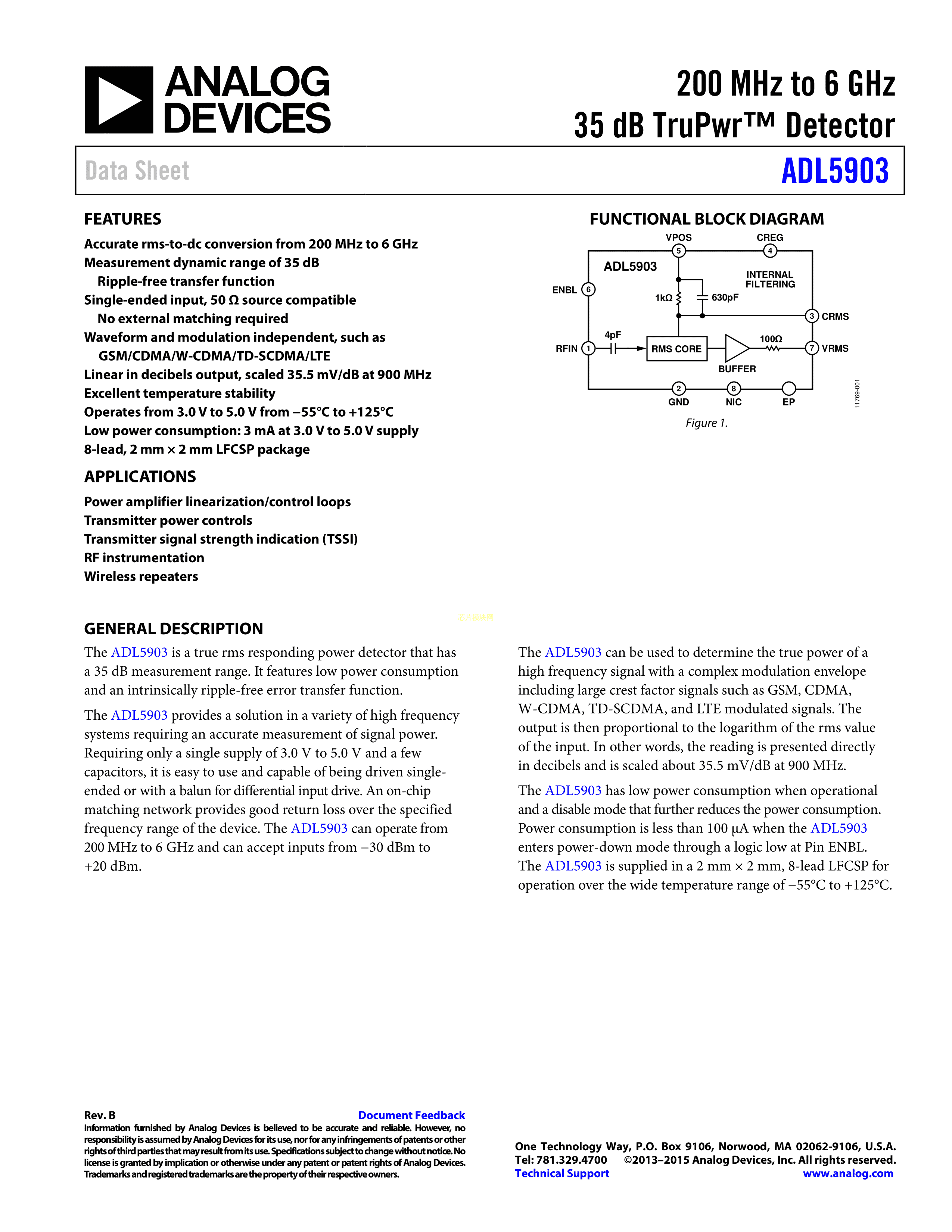 ADL5903ACPZN-R7数据手册LFCSP-8封装ADI(亚德诺)-LINEARPDF规格书,中英文下载