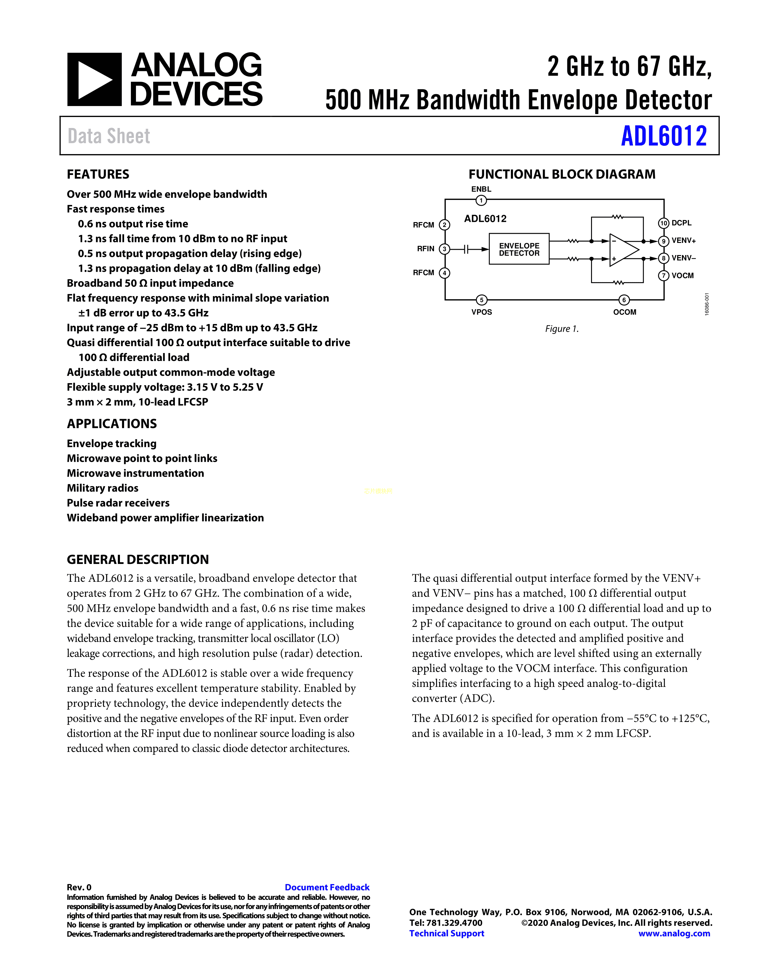 ADL6012ACPZN-R7数据手册LFCSP-10-WD(3x2)封装ADI(亚德诺)-LINEARPDF规格书,中英文下载