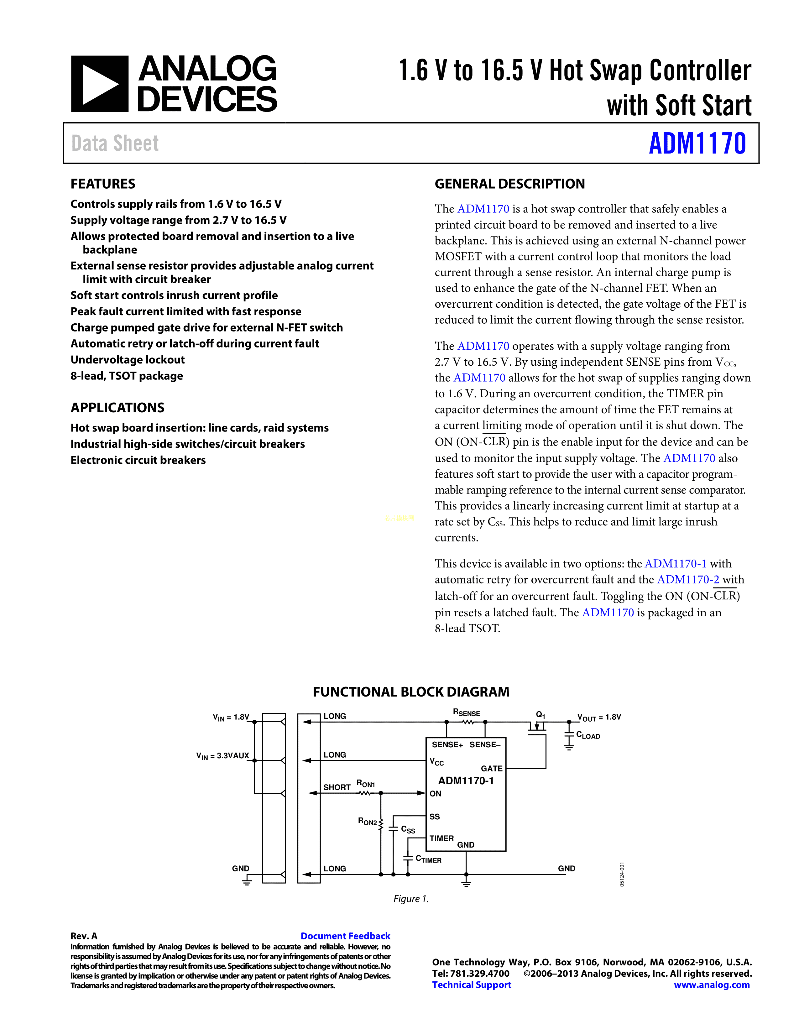 ADM1170-1AUJZ-RL7数据手册TSOT-8封装ADI(亚德诺)-LINEARPDF规格书