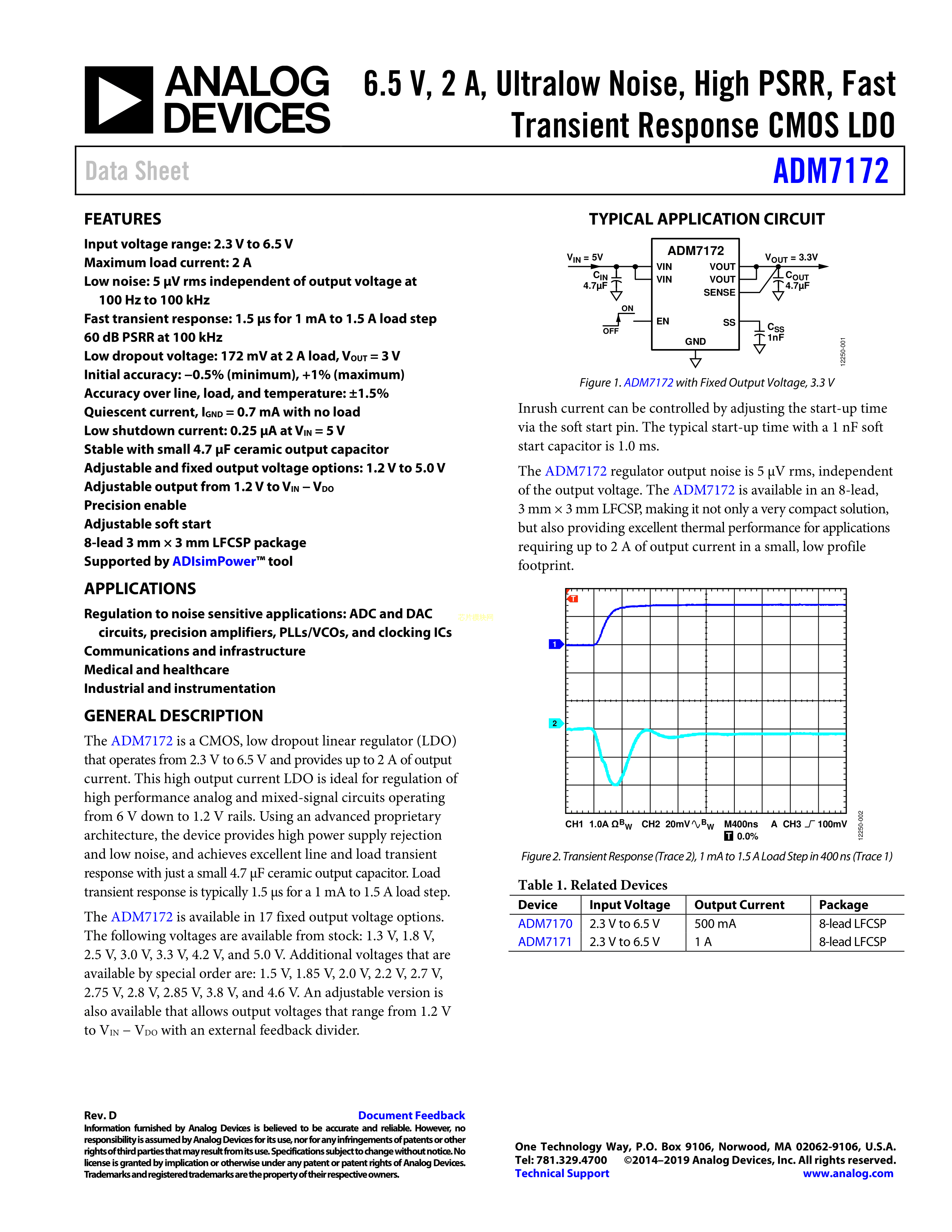 ADM7172ACPZ-5.0数据手册LFCSP-8封装ADI(亚德诺)-LINEARPDF规格书,