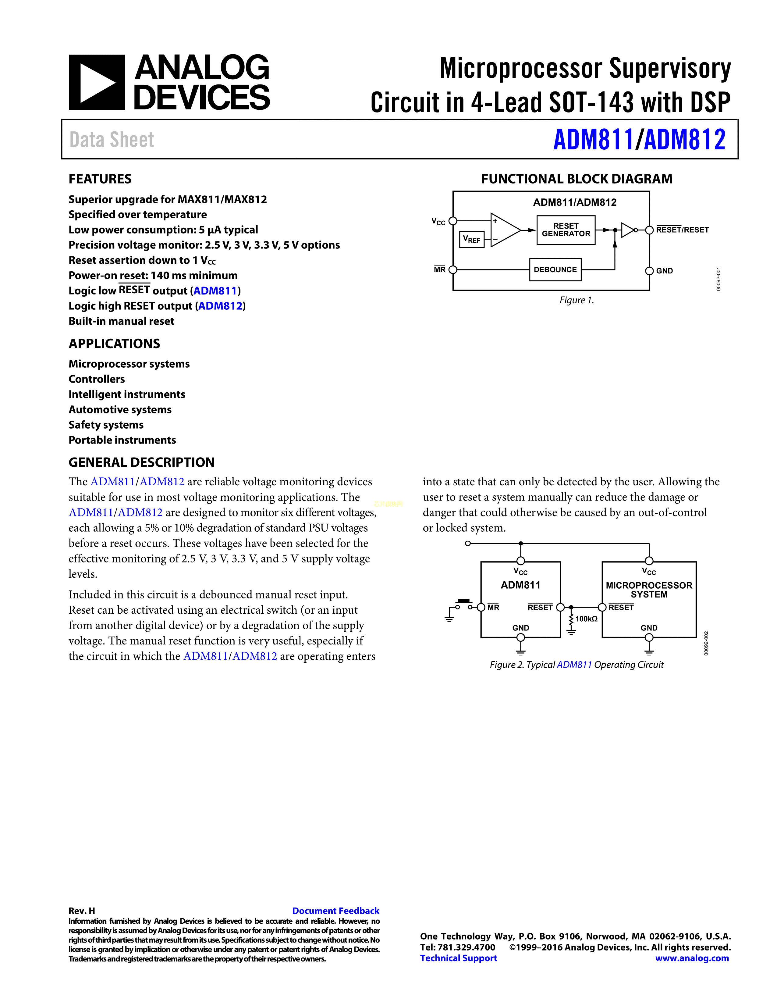 ADM812LARTZ-REEL7数据手册SOT-143-4封装ADI(亚德诺)-LINEARPDF