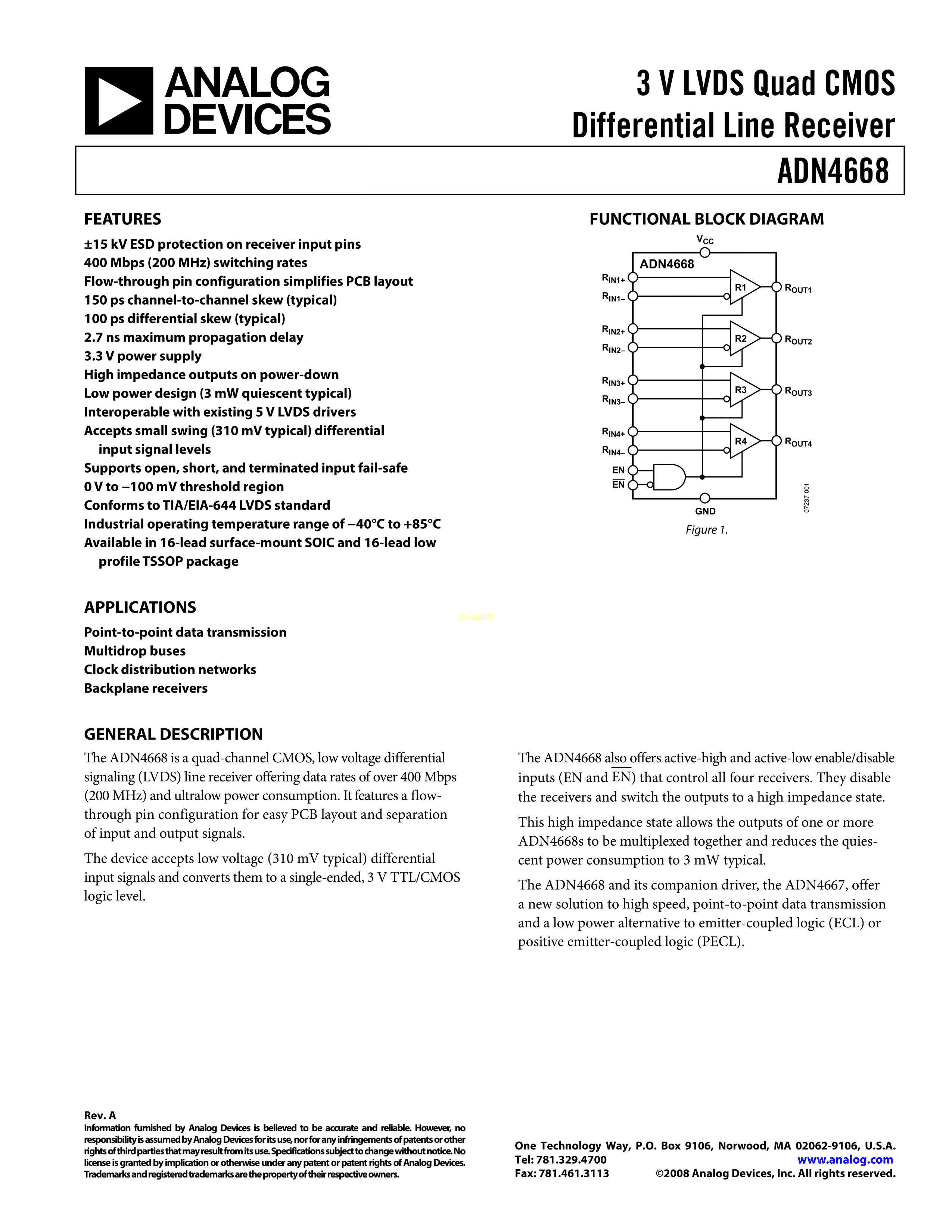 ADN4668ARUZ数据手册TSSOP-16封装ADI(亚德诺)-LINEARPDF规格书,中英文