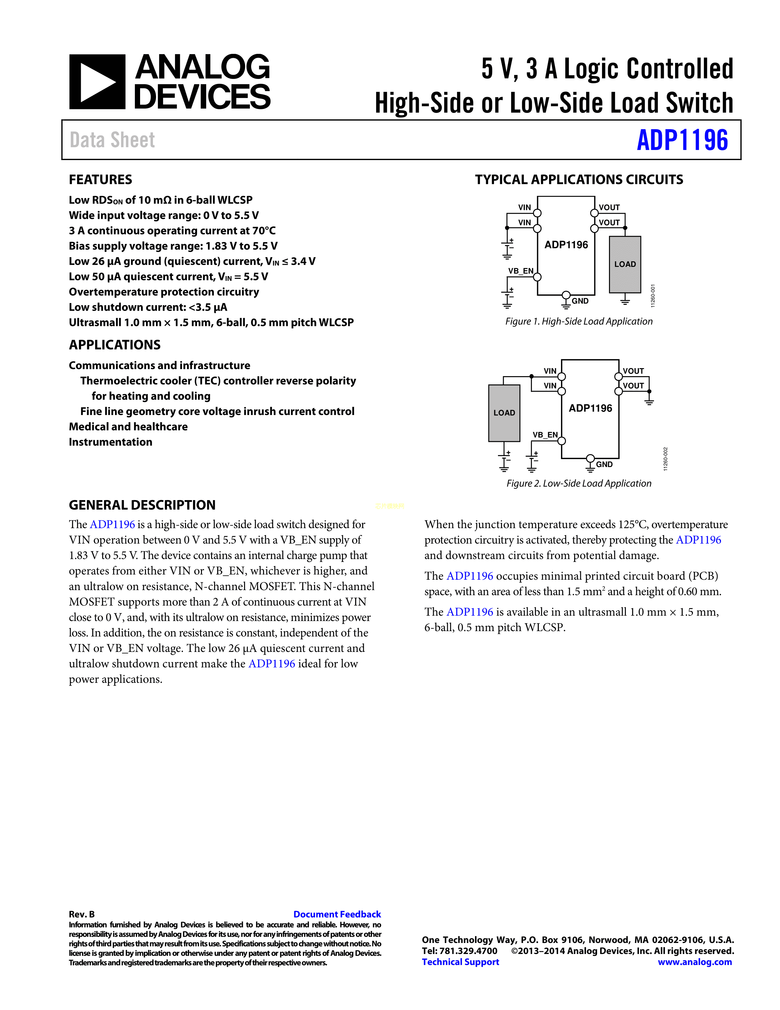 ADP1196ACBZ-02-R7数据手册WLCSP-6封装ADI(亚德诺)-LINEARPDF规格