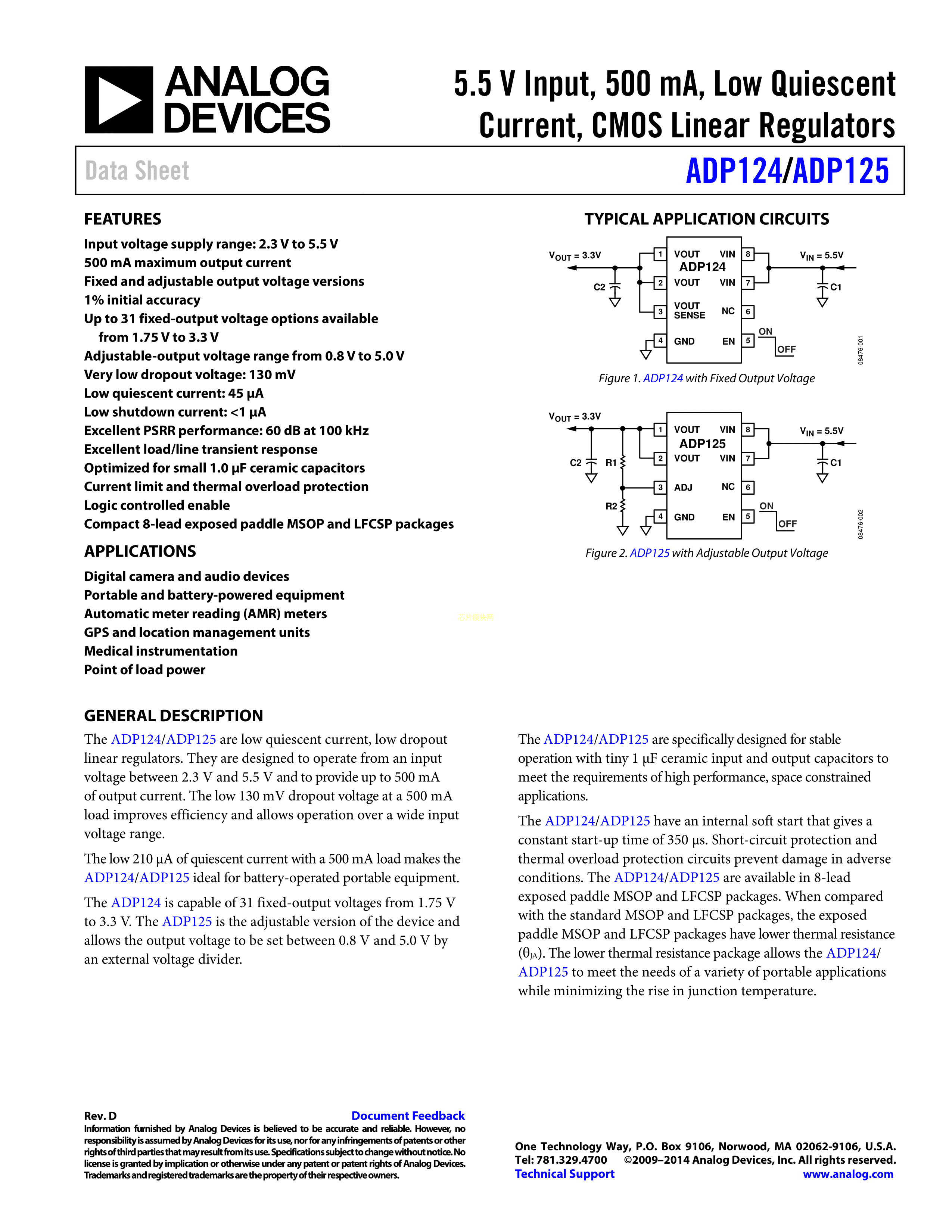 ADP124ACPZ-1.8-R7数据手册LFCSP-8封装ADI(亚德诺)-LINEARPDF规格