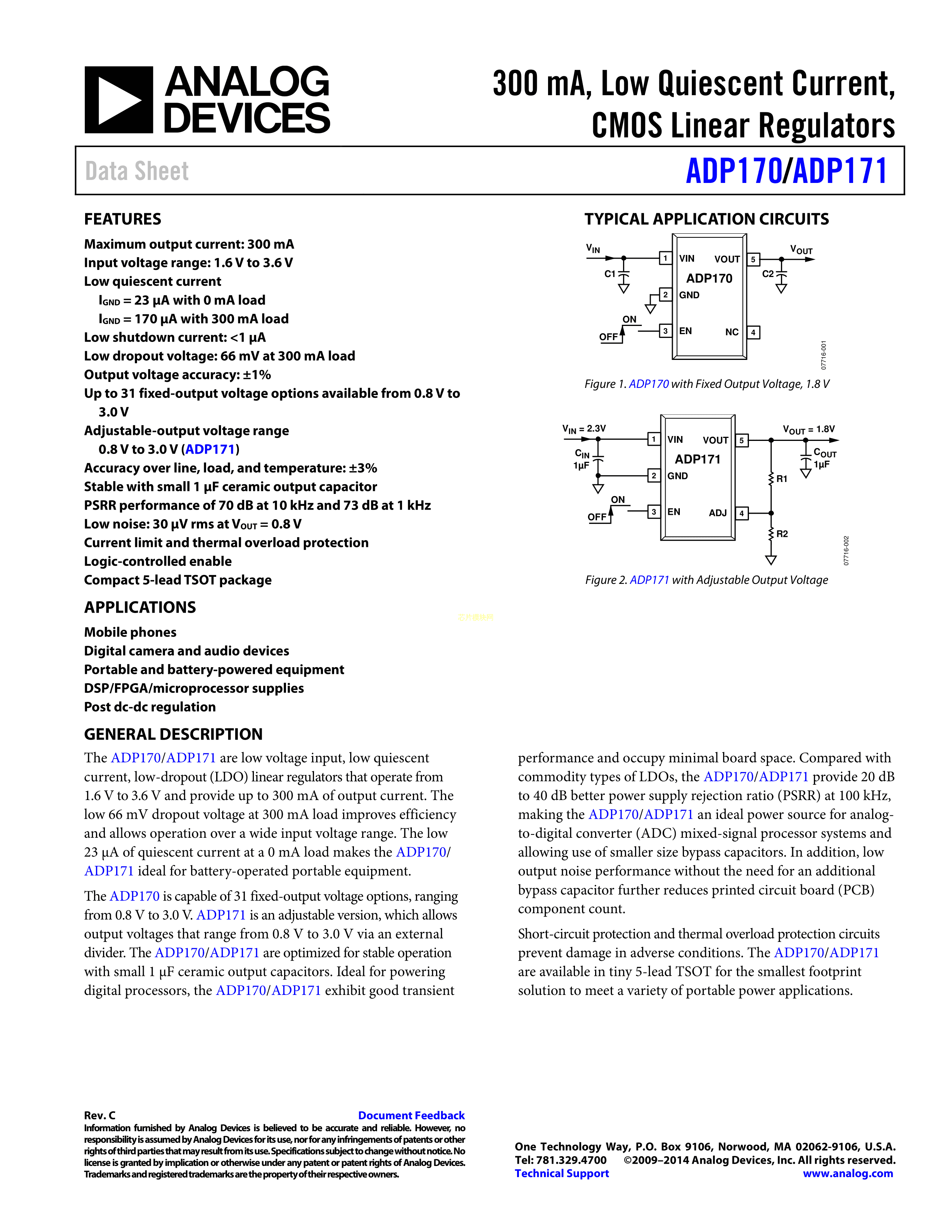 ADP170AUJZ-1.2-R7数据手册TSOT-5封装ADI(亚德诺)-LINEARPDF规格书