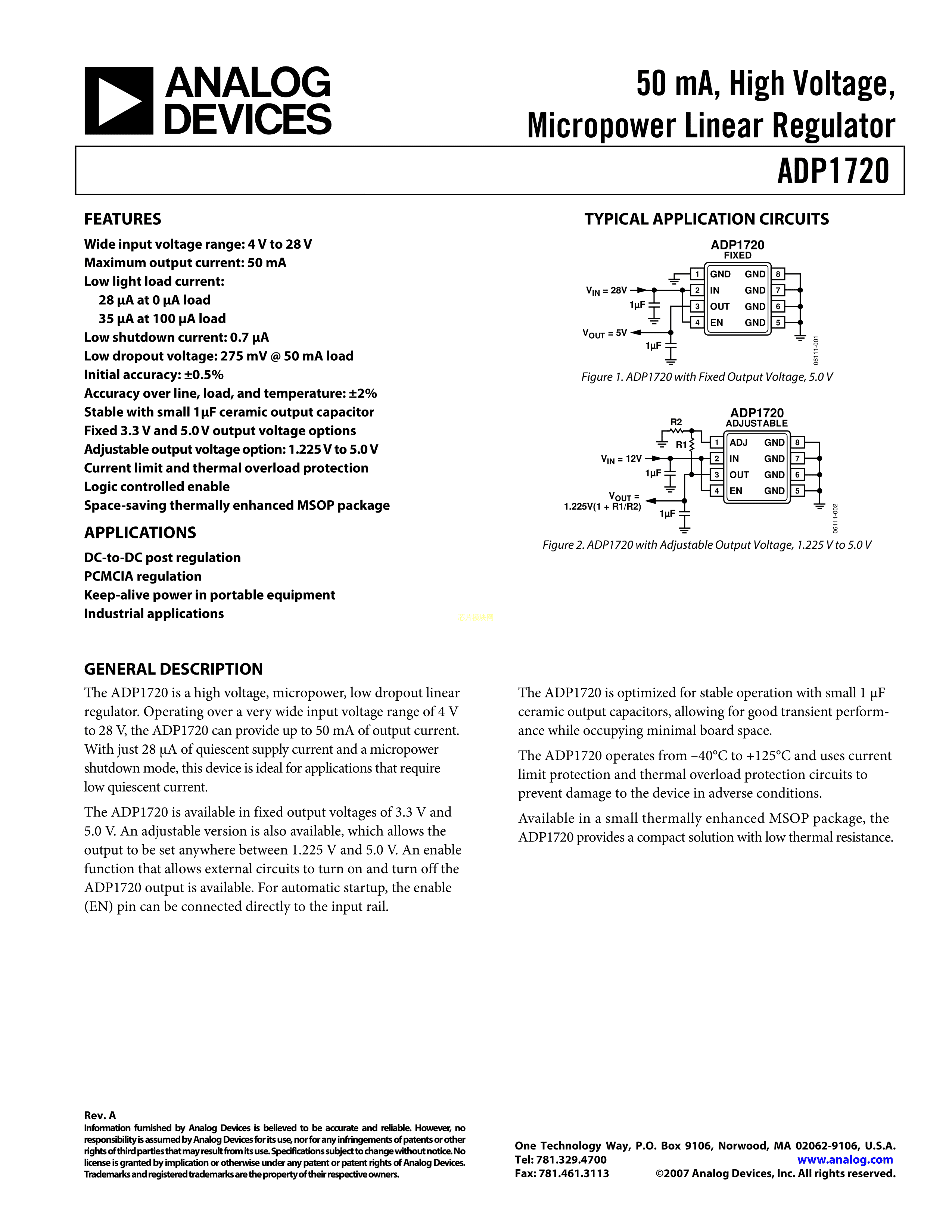 ADP1720ARMZ-3.3-R7数据手册MSOP-8封装ADI(亚德诺)-LINEARPDF规格
