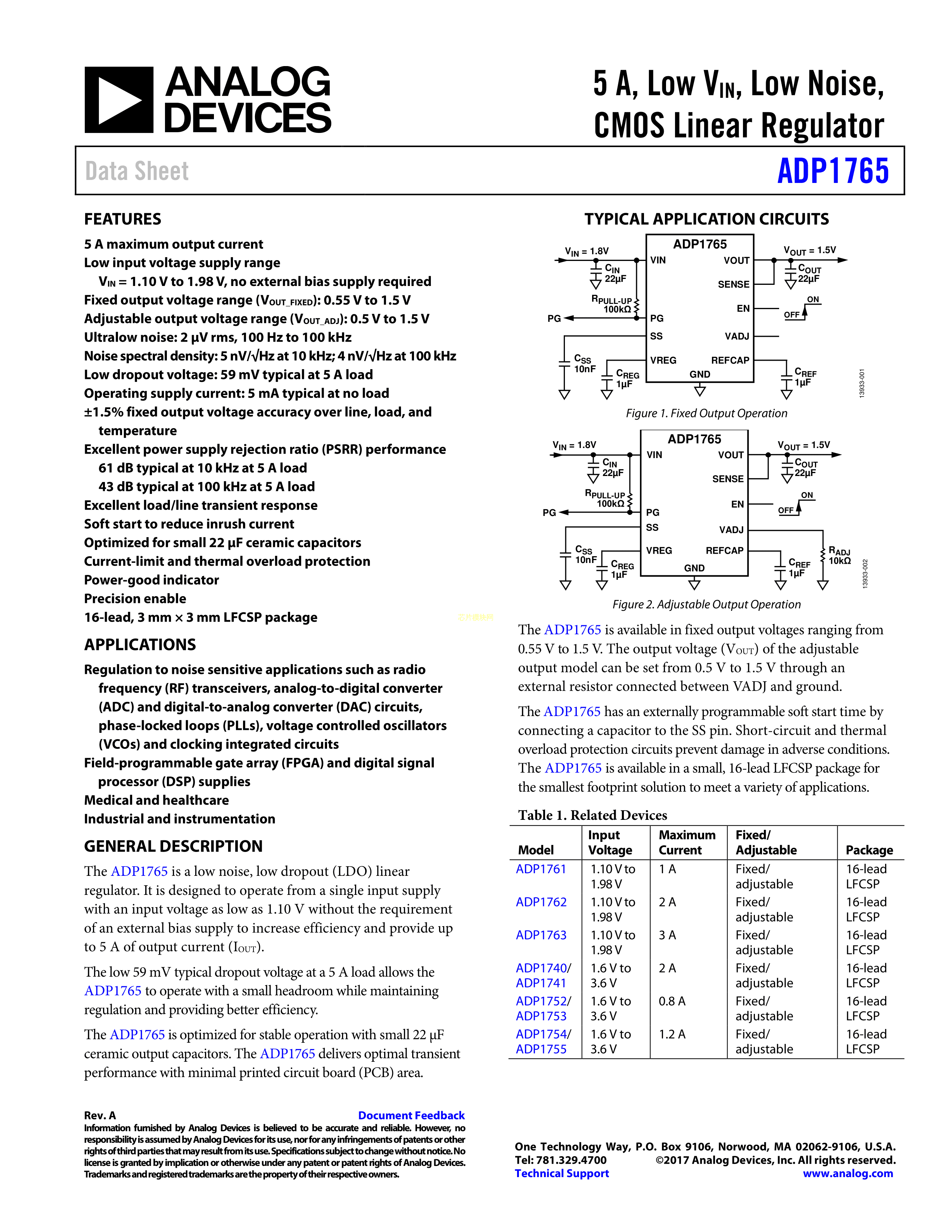 ADP1765ACPZ-R7数据手册LFCSP-16封装ADI(亚德诺)-LINEARPDF规格书,
