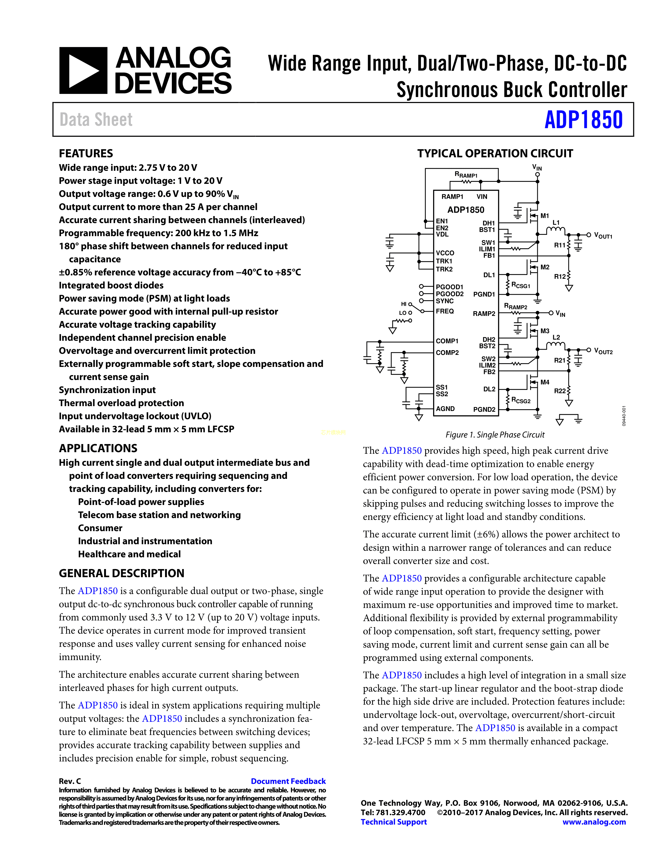 ADP1850ACPZ-R7数据手册LFCSP-32封装ADI(亚德诺)-LINEARPDF规格书,