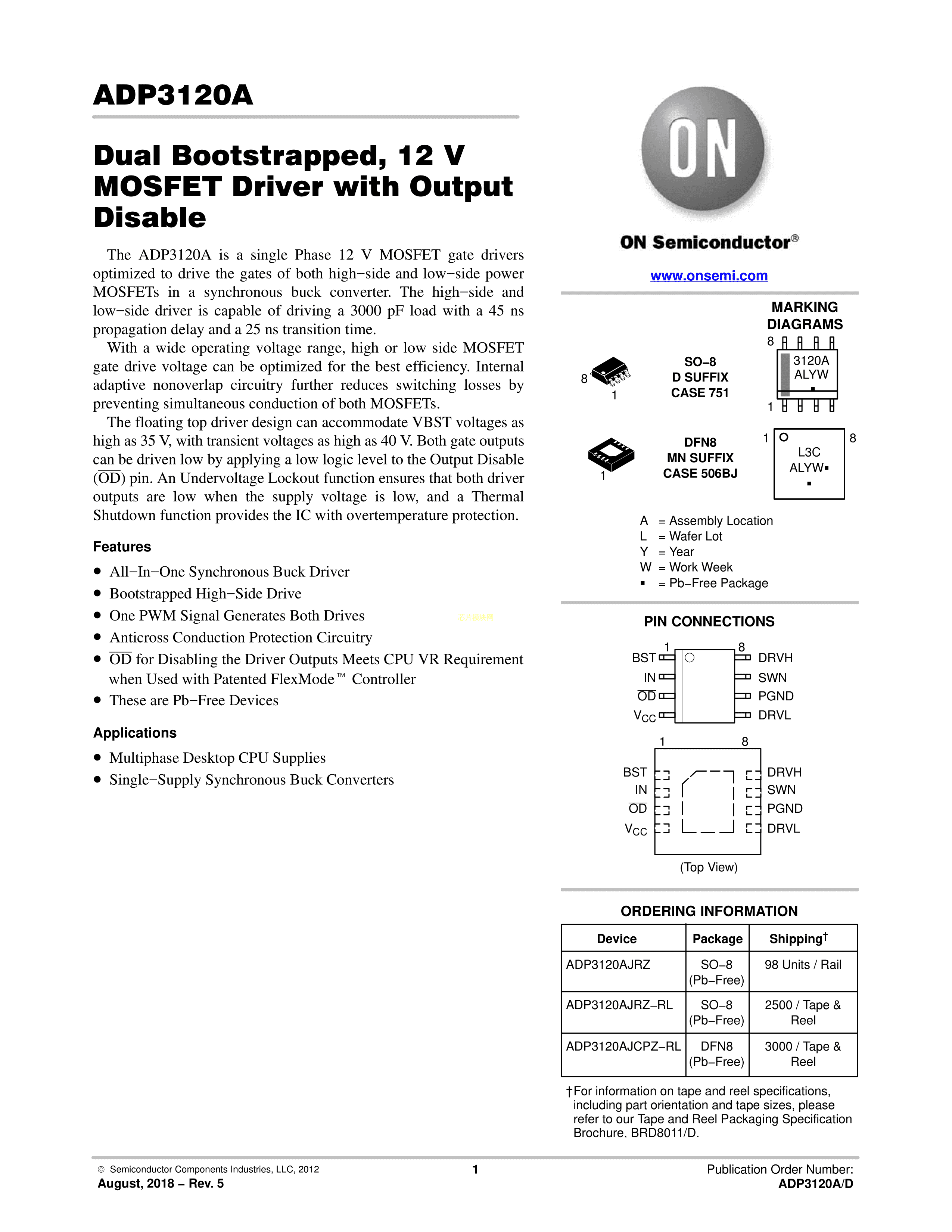 ADP3120AJRZ-RL数据手册SO-8封装onsemi(安森美)PDF规格书,中英文下载