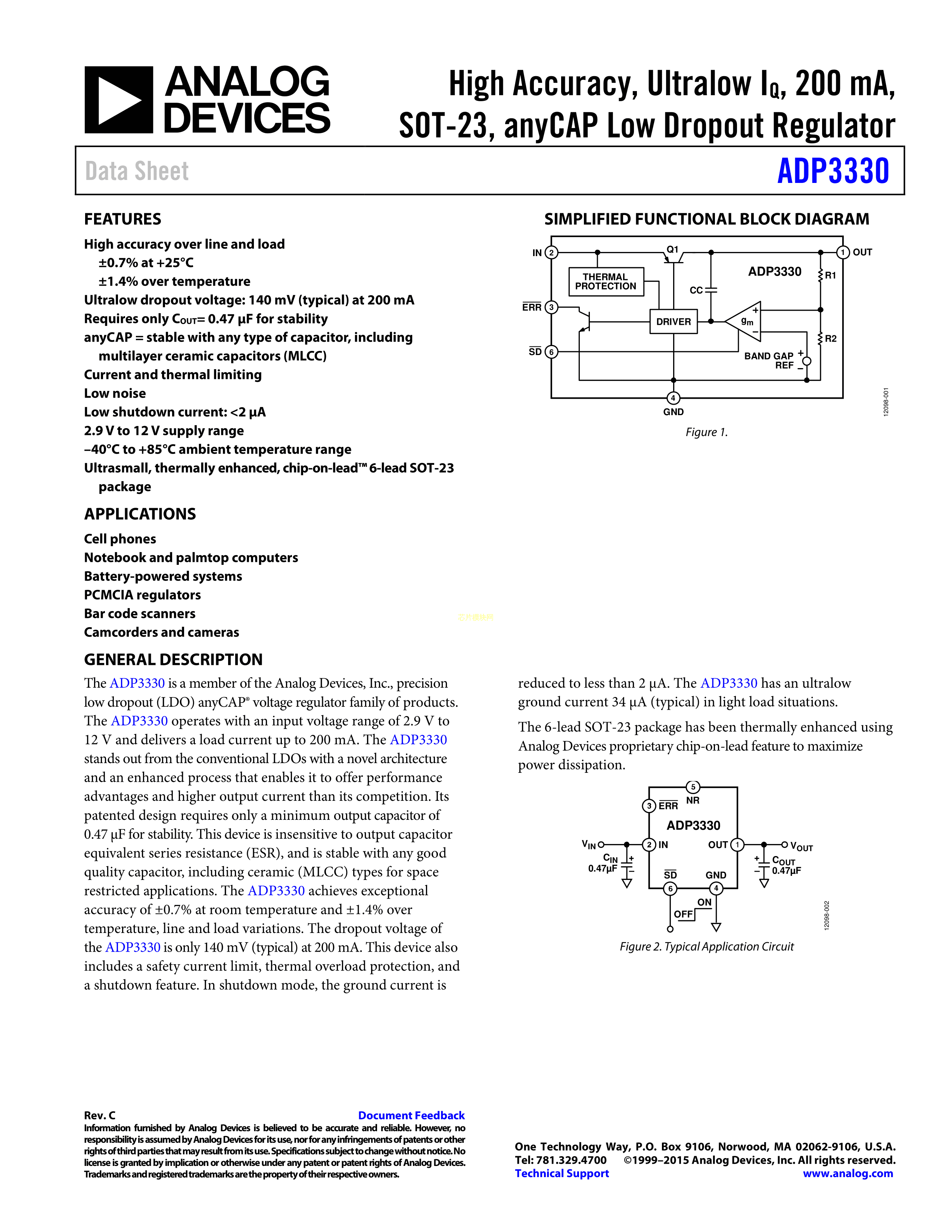 ADP3330ARTZ-5-RL7数据手册SOT-23-6封装ADI(亚德诺)-LINEARPDF规