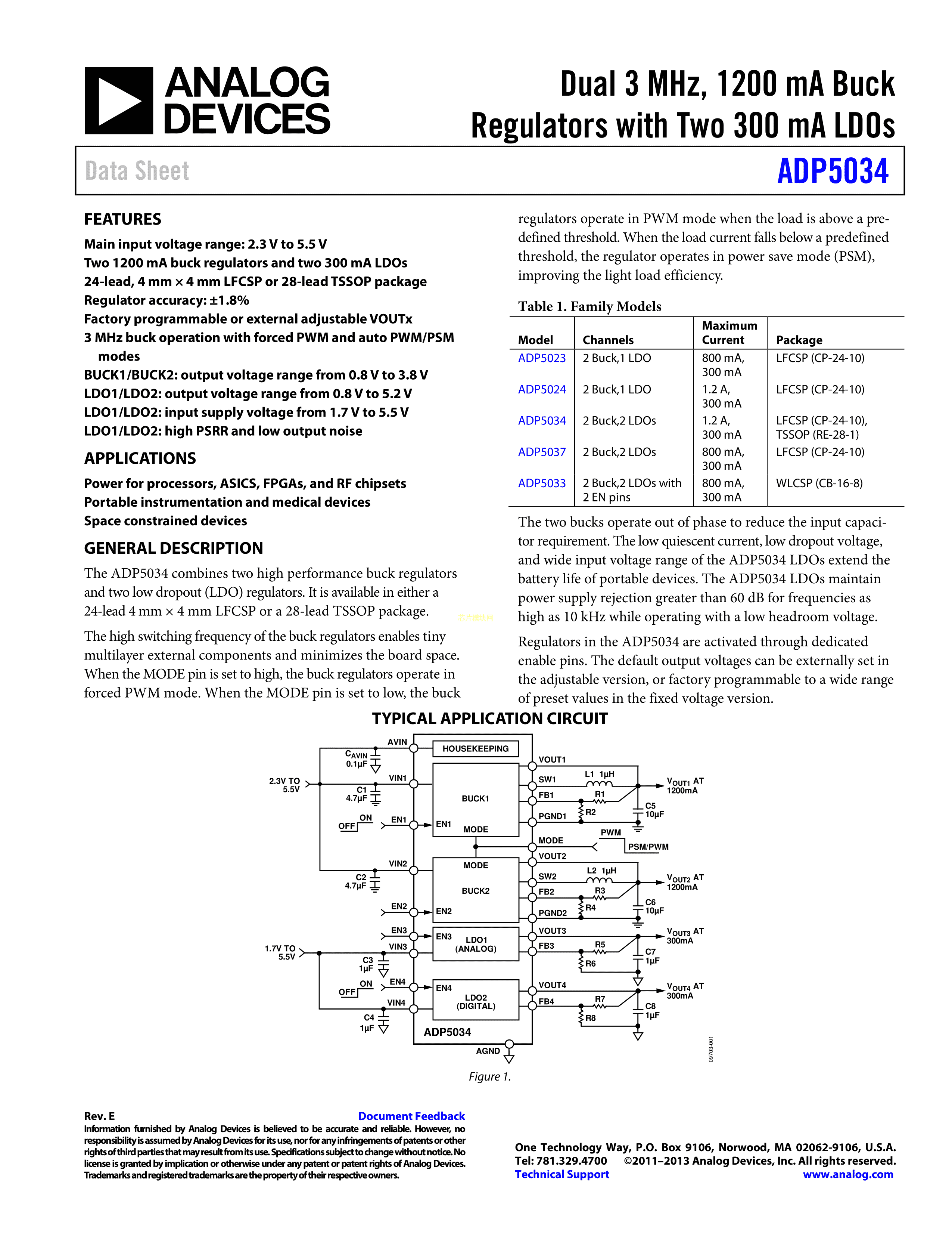 ADP5034AREZ数据手册TSSOP-28封装ADI(亚德诺)-LINEARPDF规格书,中英文