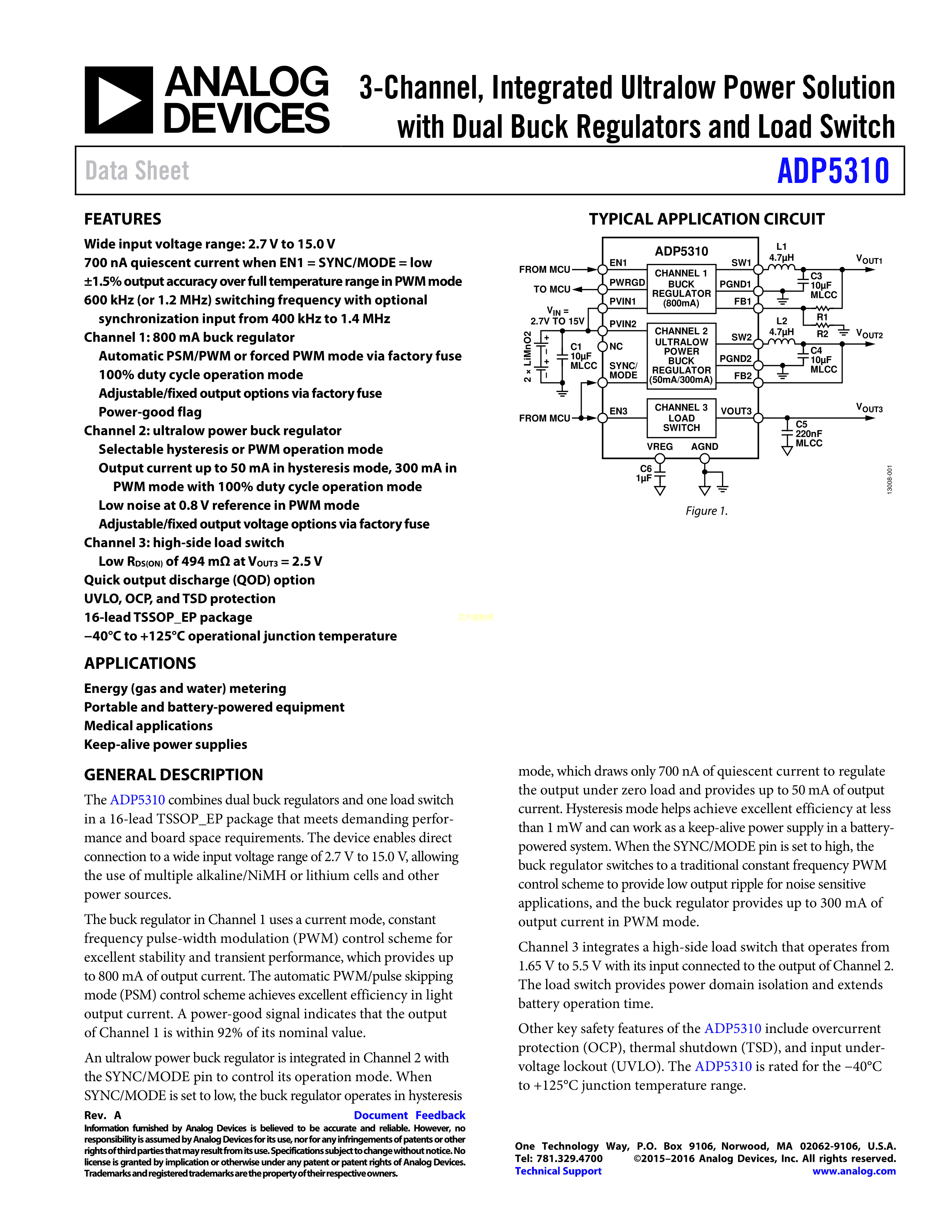 ADP5310AREZN-255R7数据手册TSSOP-16封装ADI(亚德诺)-LINEARPDF